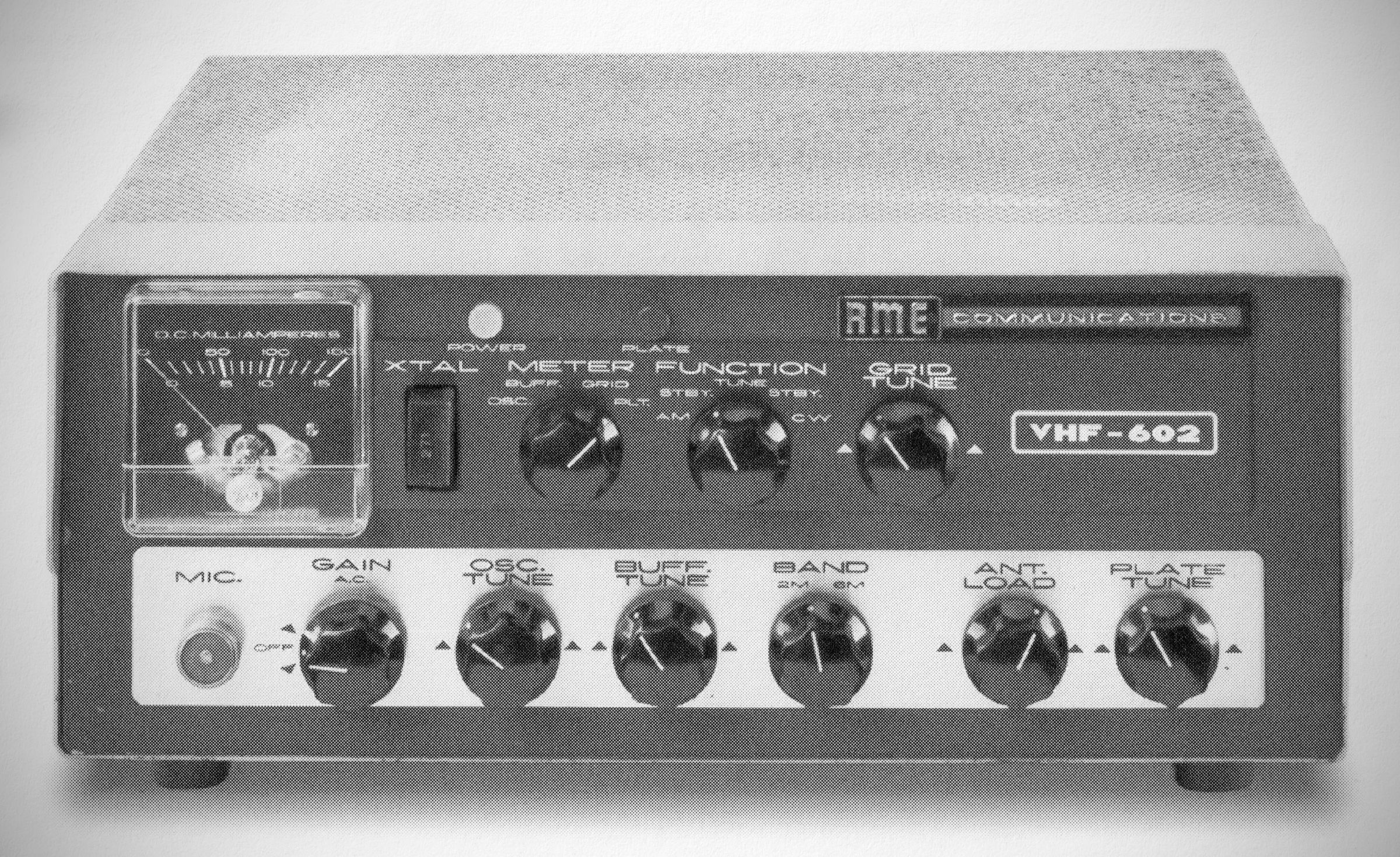 The RME VHF-602 was made when the company was part of G C Electronics and was a re-badged Globe HG-602 meter transmitter (see separate entry). It ran 60 watts CW, 50 watts phone on 6 & 2 meters. The 6146 final was plate-modulated; $179.95,1962. (1)