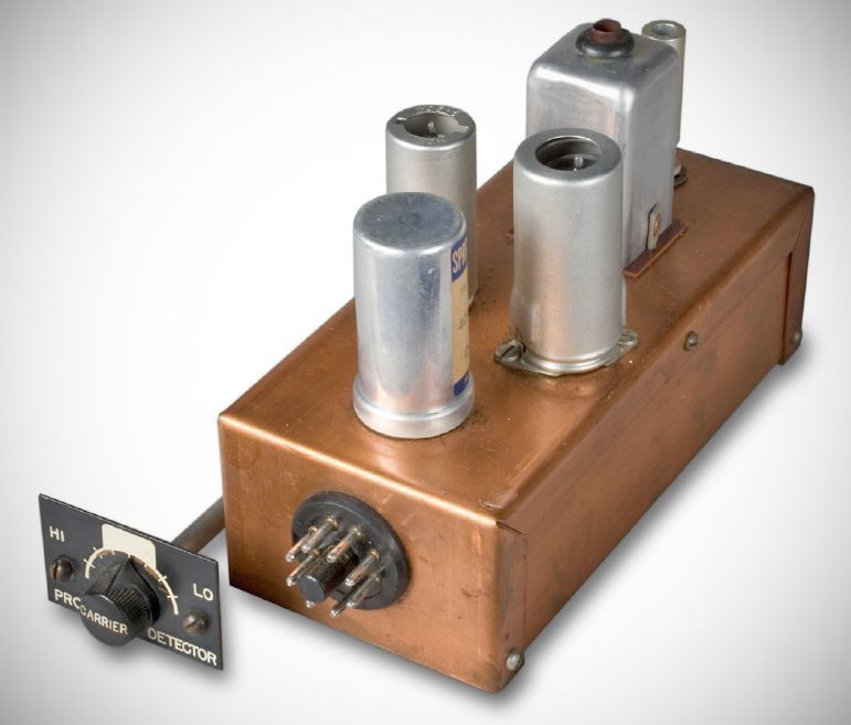 Universal Service of Columbus, Ohio sold a product detector adapter that improved the performance of older receivers on SSB and CW, and allowed the use of AVC. Models were made for Collins 75A-2 & 75A-3 receivers, as well as the National HRO-50 and 60. The unit plugged into the receiver’s FM adapter socket. Its sideband selection knob and indicator plate mounted on the front panel.