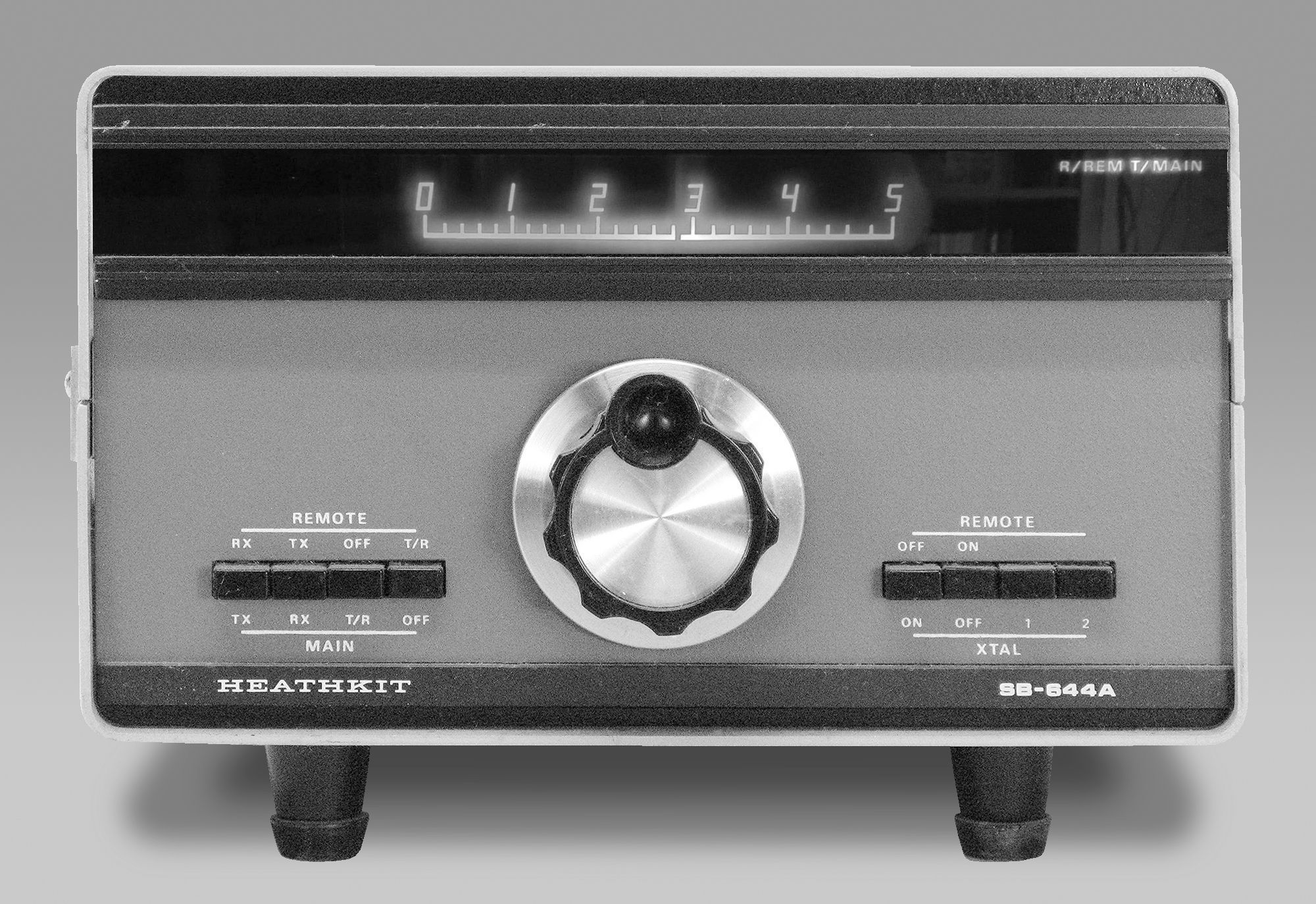 The SB-644(A) permits transceiving from either the SB-104 or the SB-644(A) as well as split operation. Unlike the SB-640, the 644(A) also permits control of either the transmit or receive frequency from the remote VFO with the SB-104 controlling the other. The 644(A) also permits operation on one of two crystal frequencies. Crystals used are the smaller HC-25U type, rather than the HC-6U, which Heath had used previously.