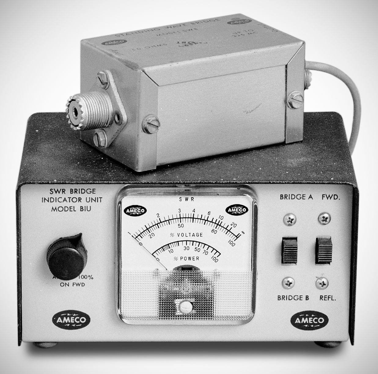 Ameco BIU indicating unit (bottom) with SWB bridge unit. Sold seperately.