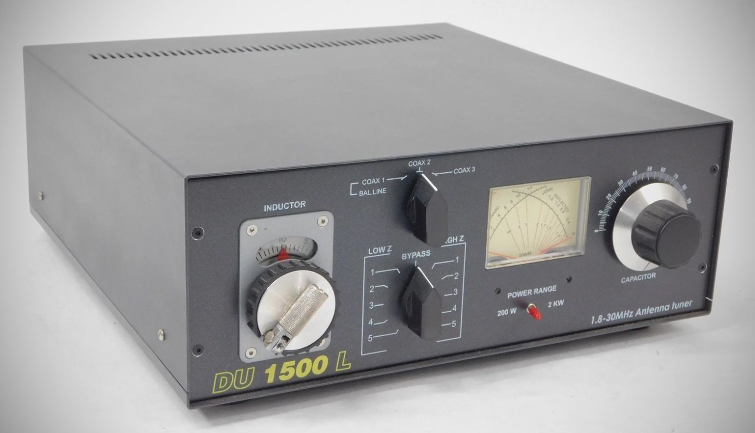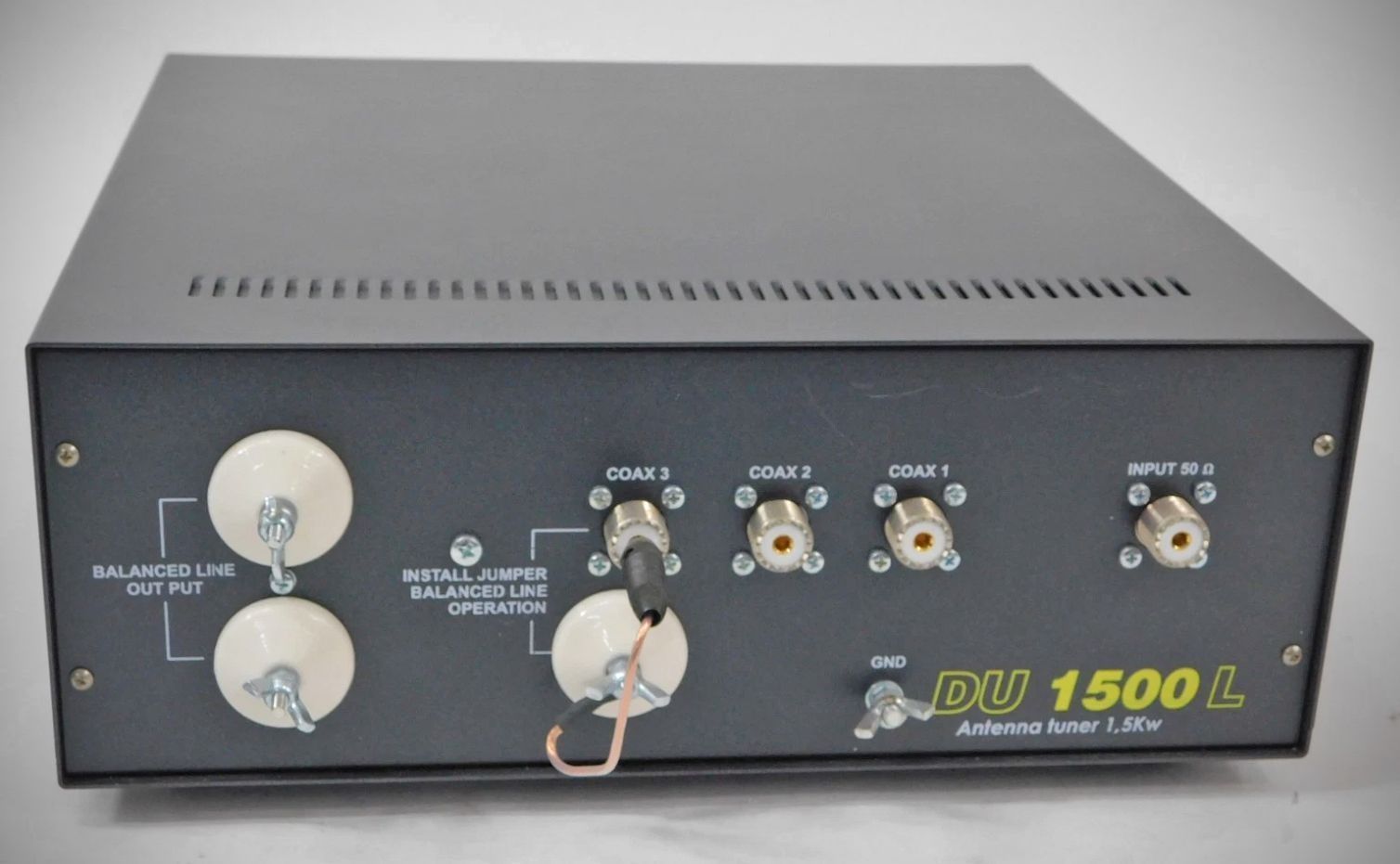 Model DU 1500 L is high power antenna tuner that uses and adjustable reactive network for matching the unbalanced 50 ohm output impedance of transmitters and transceivers to a variety of balanced and unbalanced loads.