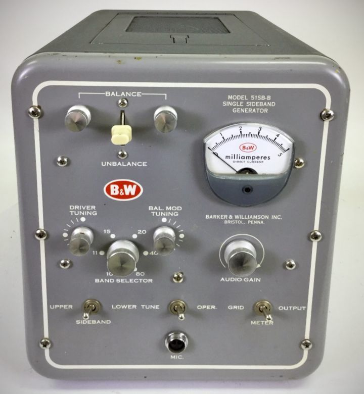 The 51SB-B was similar in function to the 51SB model but was made to work with the company's 5100-B transmitter. The newer version of the sideband adapter lacked an internal power supply and took plate and filament power from the 5100-B.