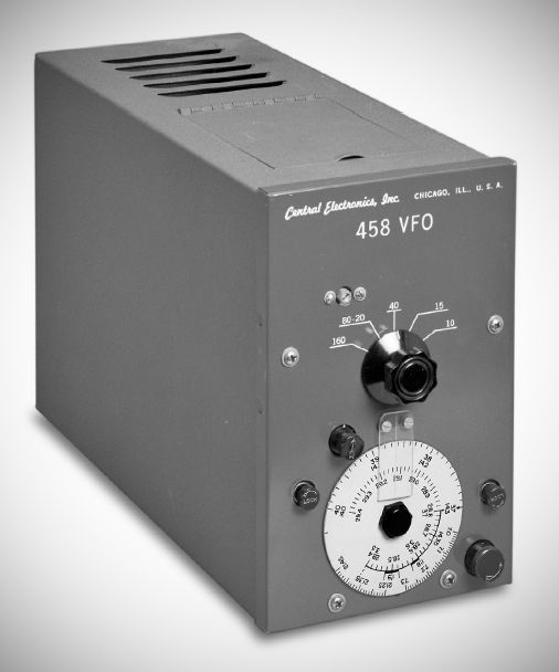 CENTRAL ELECTRONICS 458 VFO The 458 VFO was a surplus BC-458 Command Set transmitter modifiedand repack-aged to work as a VFO with model 10 and 20 exciters on the 160–15 meter bands. The company’s 458A-10 crystal-controlled converter extended coverage to 10 meters. The price of the conversion kit, including a new case, panel, and calibrated dial, was $25.00. Surplus BC-458s could be had for as little as 50 cents. The kit version of the 10 meter converter was $27.50 ($37.59 wired); 1955. (1)