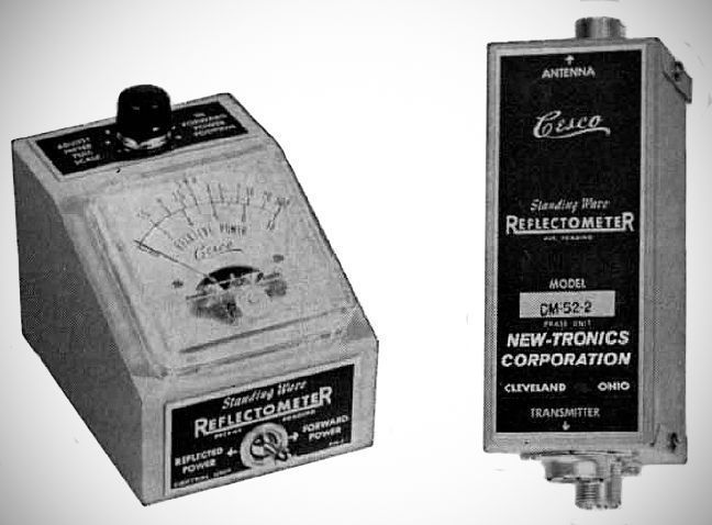 The CM-52 and CM-72 meters was designed for 52Ω and 72Ω impedance lines respectively. They are calibrated for relative power and SWR, and could be left in the line at power levels up to 1 KW. Frequency range from 3 to 200 MHz. No adjustment or balancing of the meter was necessary to read SWR.