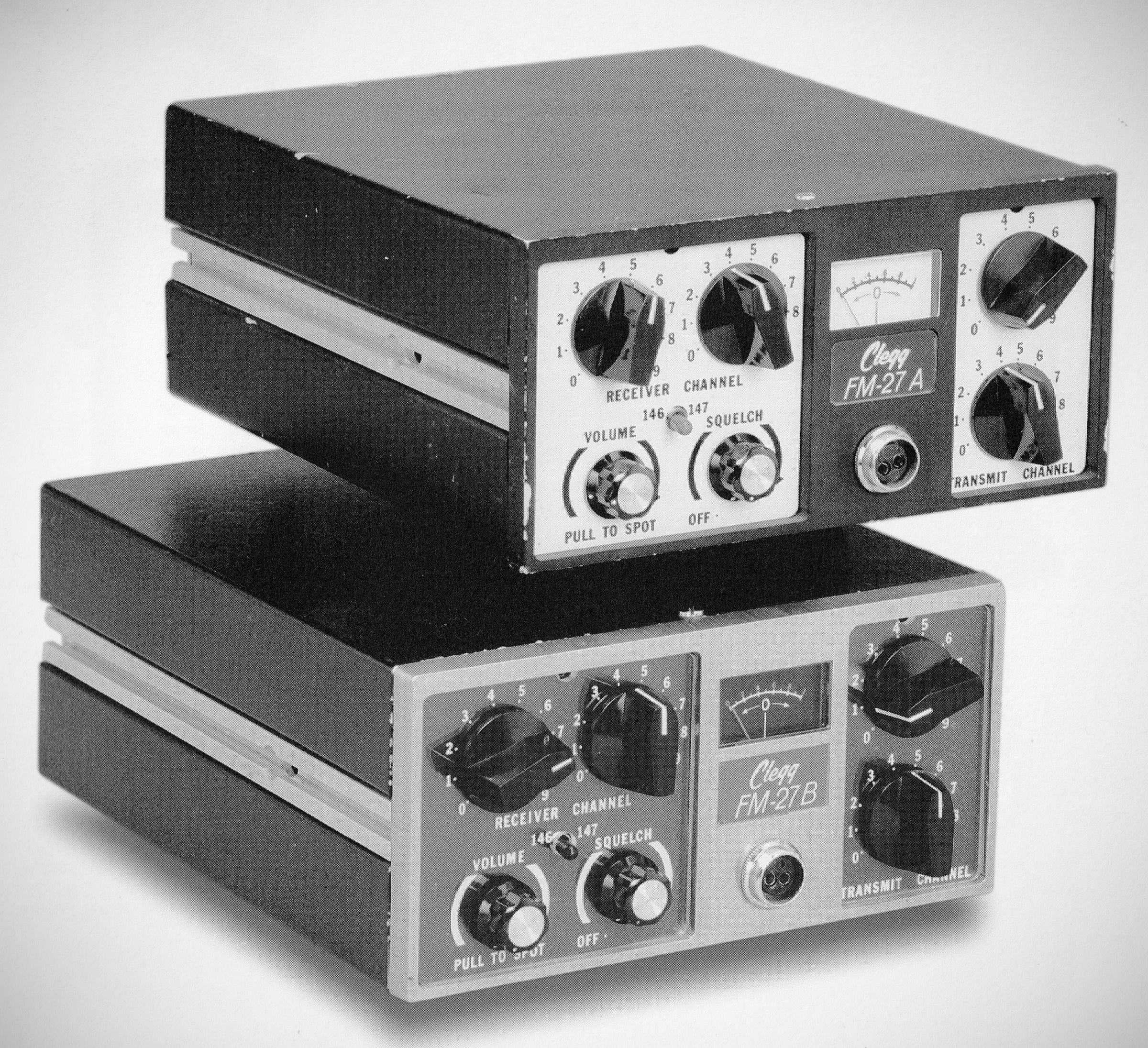 The Clegg FM-27A and B two meter transceivers were among the first to liberate the operator from the rock-bound status imposed upon those with crystal-controlled rigs. The FM-27A had completely synthesized coverage of 146-148 MHz in two 1 MHz segments. It was, however, able to transmit only in the 146 MHz range.