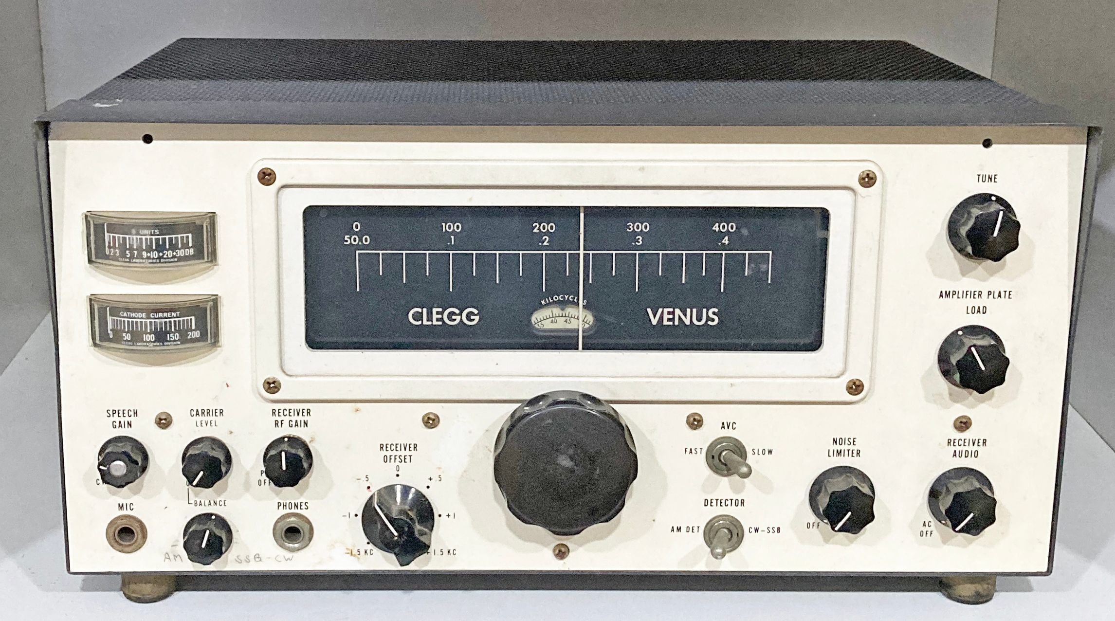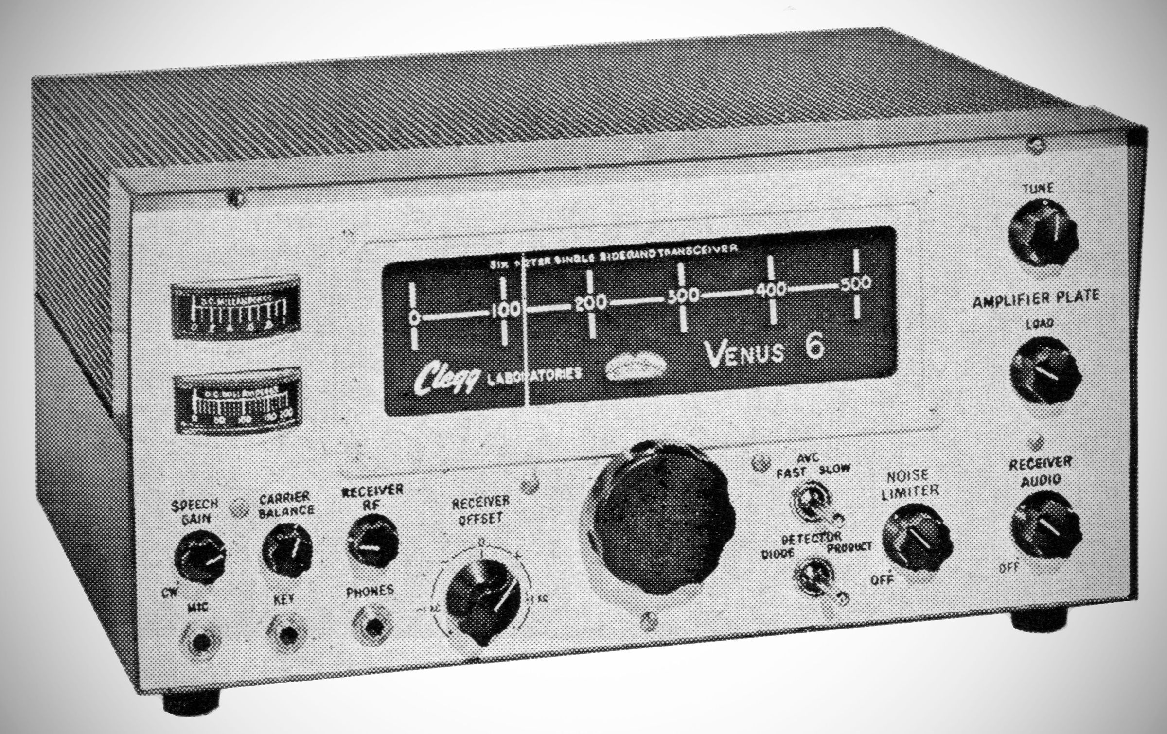 The Venus 6 meter SSB transceiver used a crystal lattice filter and had 85 watts output on sideband and CW. The AM mode was available at reduced power. Its receiver was a double-conversion superhet. The AC power supply was a separate unit that could be mounted remotely.