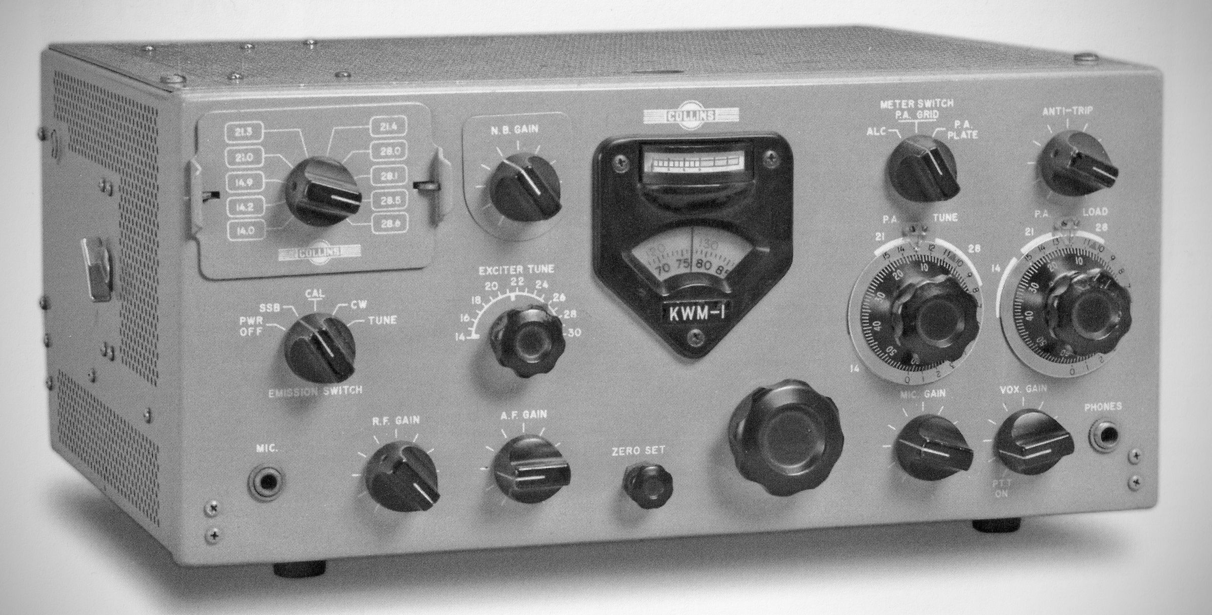 Collins created a new category of ham gear when they introduced the KWM-1 in 1957. Although large, heavy receivers and transmitters would stay around for some time to come, the compact transceiver eventually changed the ham shack and the way amateurs operated. Designed initially as a mobile rig, Collins developed a line of accessories that made it a good candidate for fixed stations and portable work. Its major shortcoming, in the eyes of many amateurs, was that it operated only on 20, 15, and 10 meters. The KWM-1 used 24 tubes in a circuit that employed the famous Collins PTO and mechanical filter. Power output from the 6146 finals was 100 watts.
