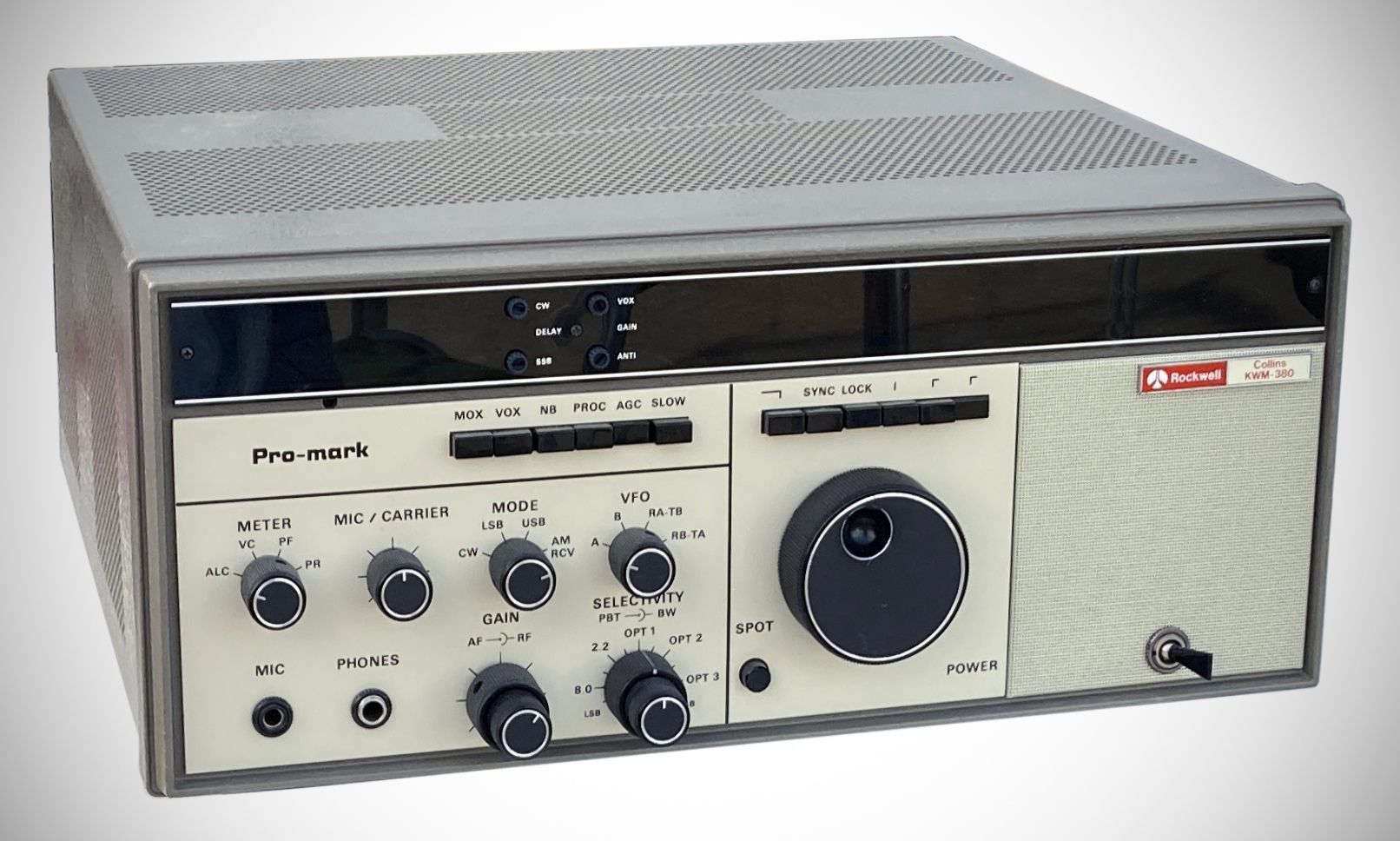 Collins took several interesting turns as they looked for a replacement for the S/Line and KWM-2. Manufacture of the KWM-2 continued more than 20 years after it was introduced. The transceiver that succeeded it was nothing like the KWM-2. In fact, the KWM-380 was unlike anything else. Collins introduced the amateur, military, and commercial markets to technology and construction that had much in common with computers. Art Collins had been gone from the company seven years when the KWM-380 was introduced, but it still represented the future as he envisioned it. The new transceiver was solid-state, synthesized, and ran on digital technology. It covered .5-30 MHz in 10Hz steps but had no band switch. The frequency range of interest was selected with the variable-rate main tuning knob. It was limited to the amateur bands on transmit. Output power was 100 watts on SSB and CW It received, but did not transmit, AM. The internal power supply could be strapped to work from 105-250 VAG or 12-15 VDC.