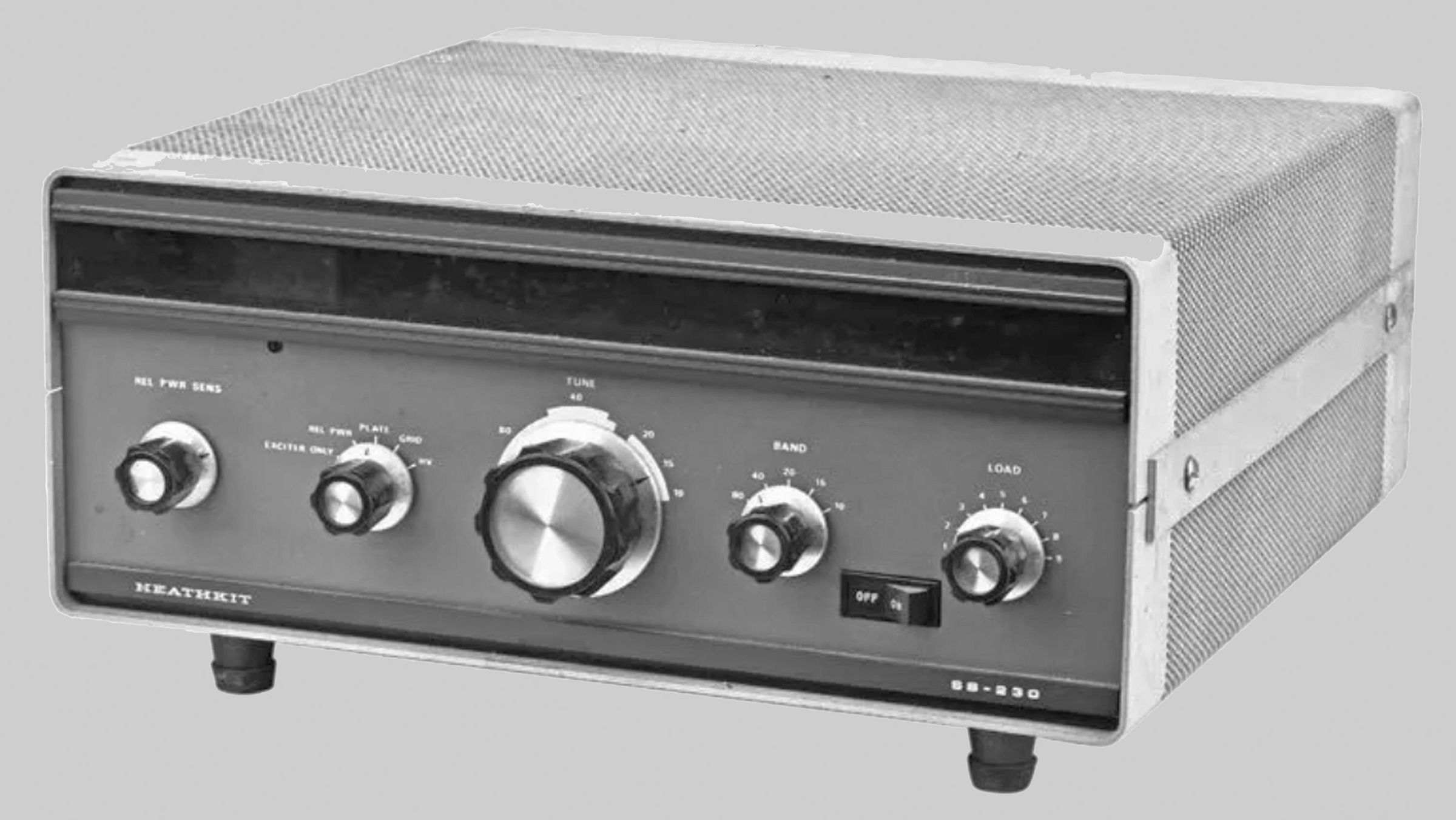 The SB-230 covers 80 through 10 meters and is rated at 1200 watts input PEP and 1000 watts CW, which translates to about 600 watts output or about 400 watts for RTTY or SSTV. It uses a single (and expensive) Eimac 8873 tube, which is convection cooled and operated in grounded grid class B. Convection cooling means the SB-230 requires no fan, and that means very quiet operation.