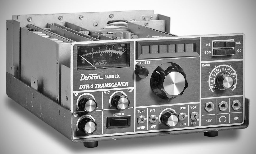 The DTR-1, shown here without the top half of its clamshell cabinet, was a 150 watt SSB/CW transceiver. It covered 160–10 meters. The DTR-1, priced at $549.50, appeared in Dentron's 1978 catalog but was never produced.