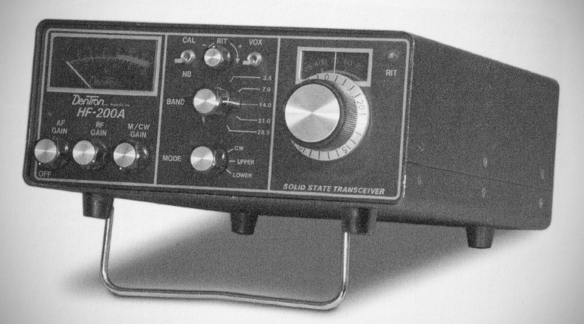 The HF-200A solid-state transceiver covered 80-10 meters with 200 watts input power. The HF-200A used a six-pole crystal filter in its 9 MHz IF. The power amplifier was meant to work into a 50 ohm load and had no high-SWR protection feature.