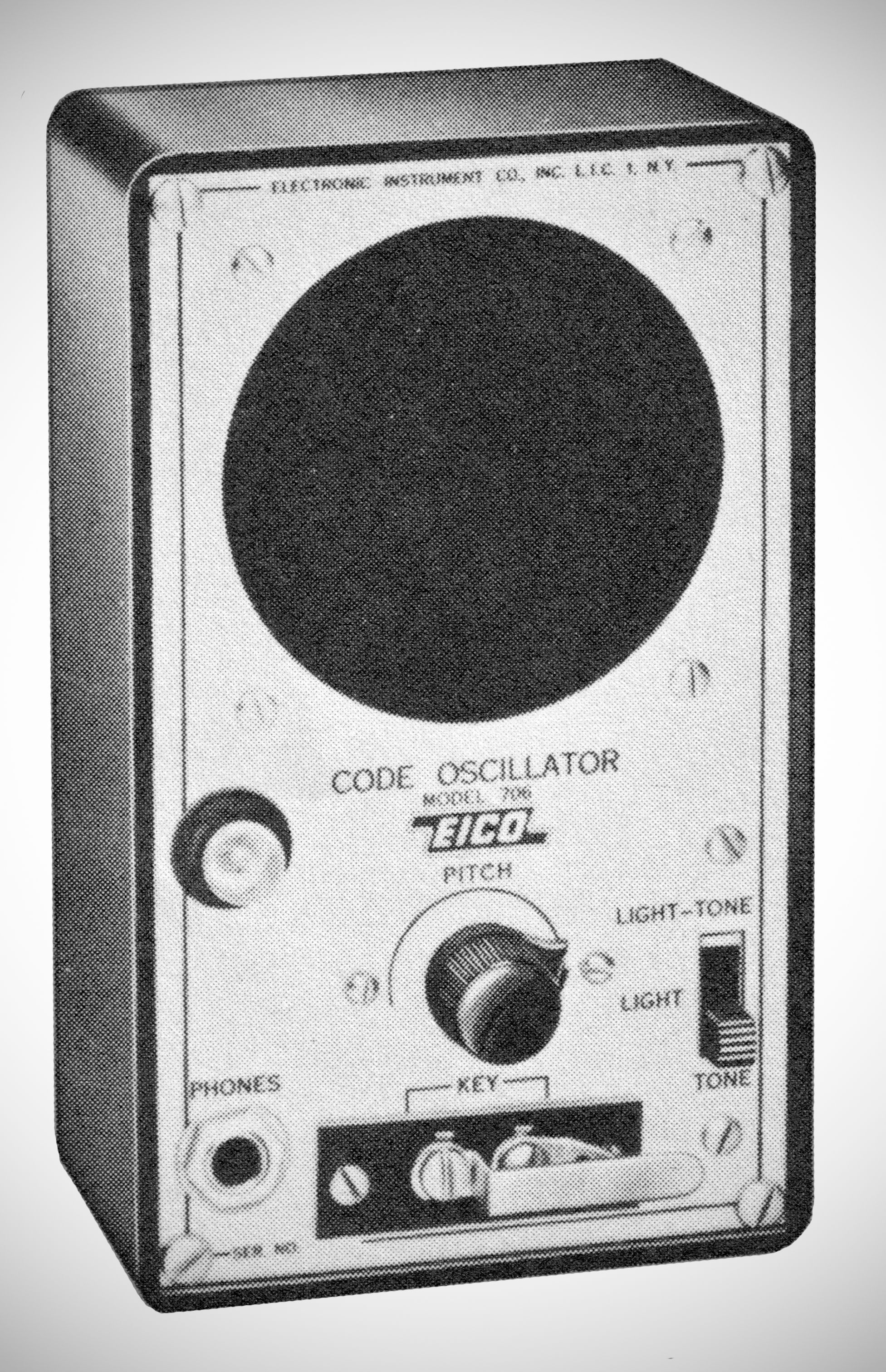 The 706 is a simple transistor oscillator using an unspecified PNP transistor. Any general purpose PNP device would work as a replacement. The unit will operate a speaker, a light, or both simultaneously. The pitch control varies the tone from about 500 to about 2000 Hz. There is also a headphone jack.