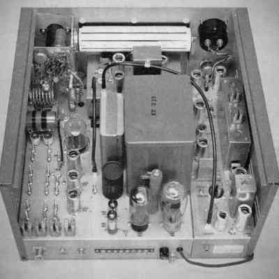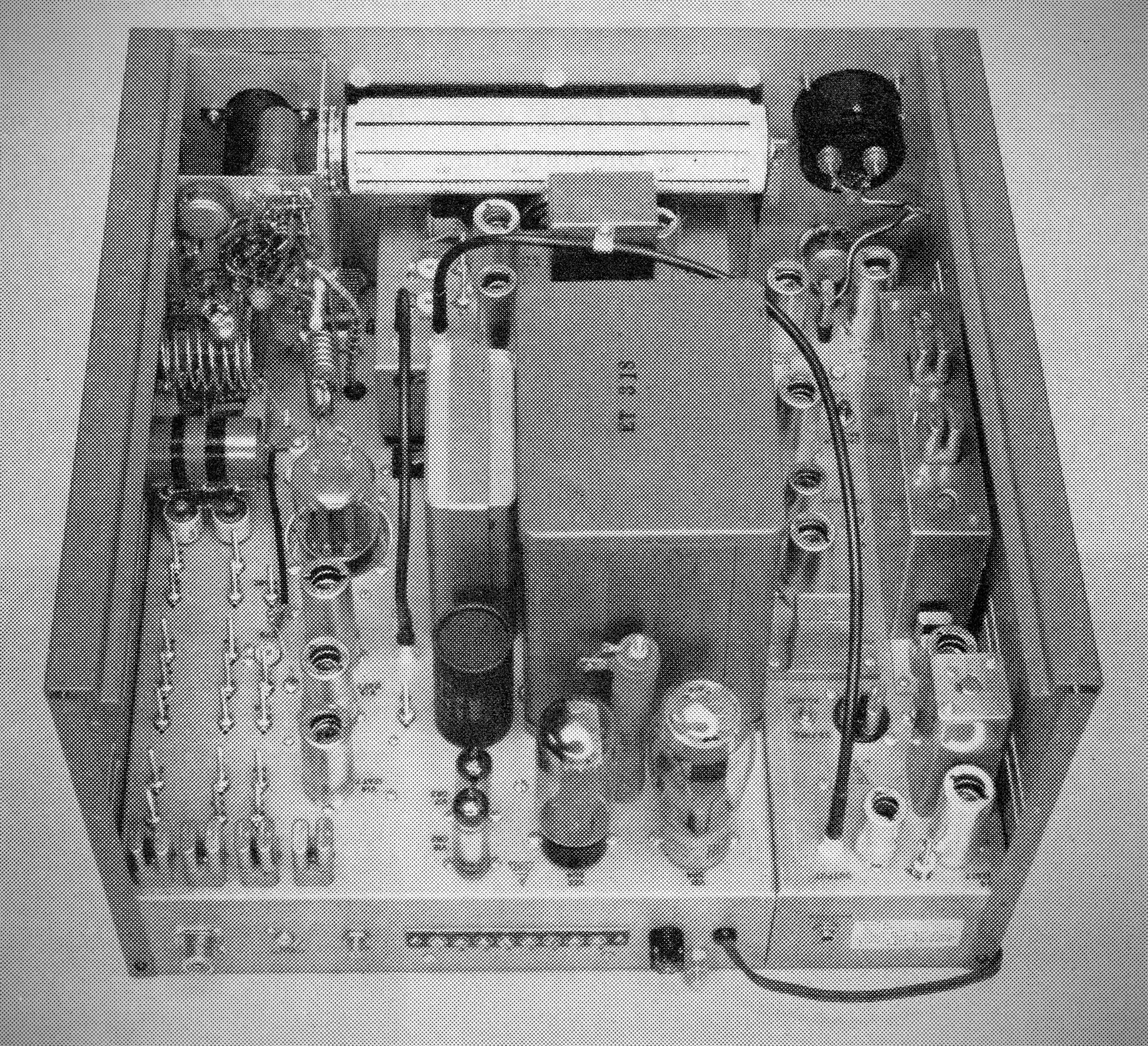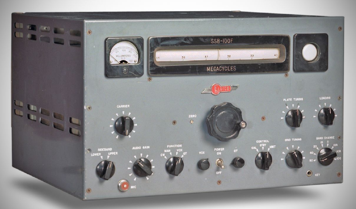 The Eldico SSB-100F used a crystal lattice filterat 413 kHz to generate SSB. It also transmitted CW and AM with carrier and one sideband. The SSB-100F covered 80–10 meters with 100 watts PEP output on SSB, 50 watts CW, and 20 watts AM. It used 22 tubes, including the front-panel oscilloscope. VOX with anti-trip was included.