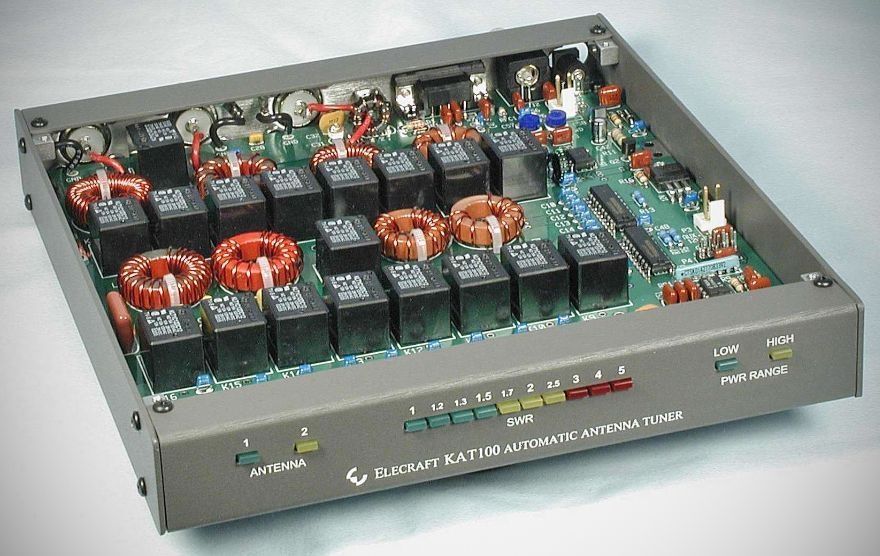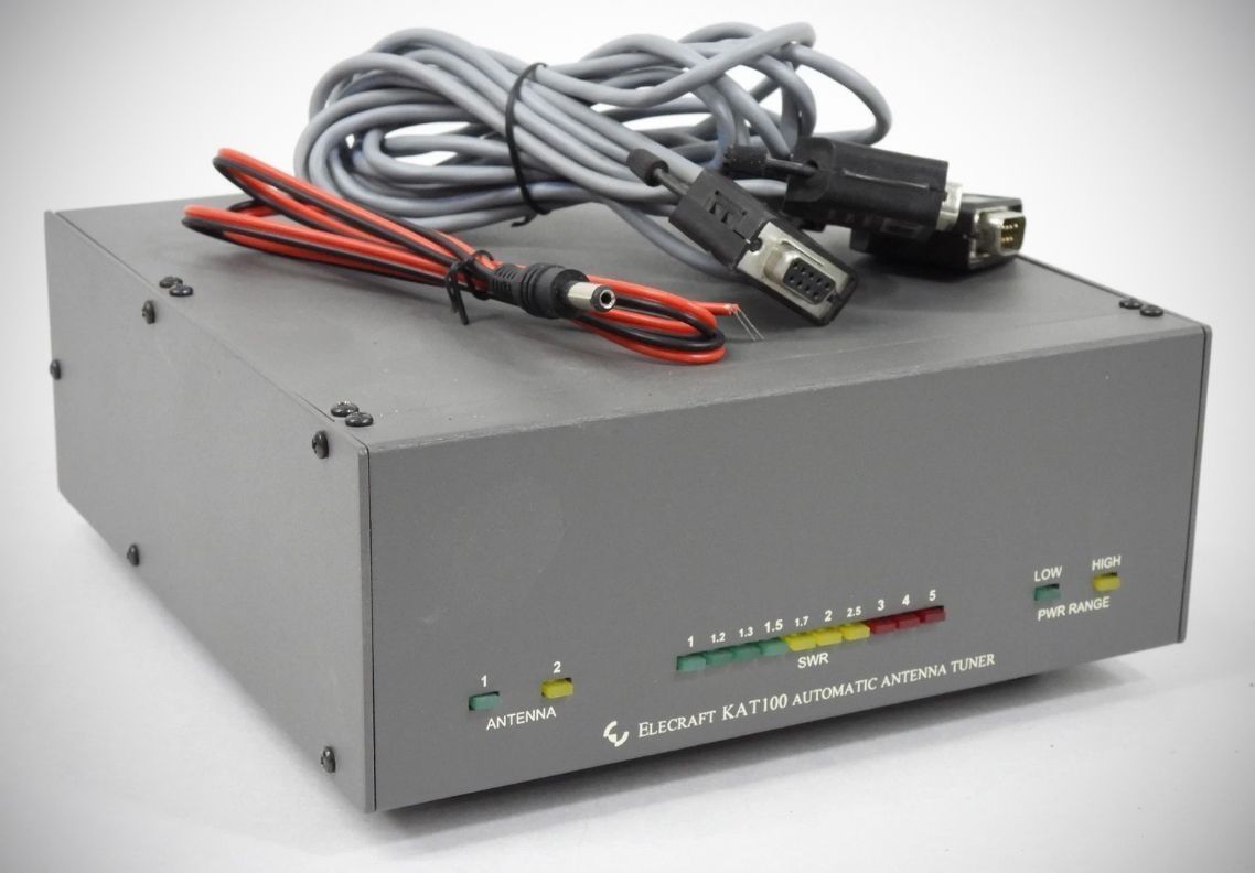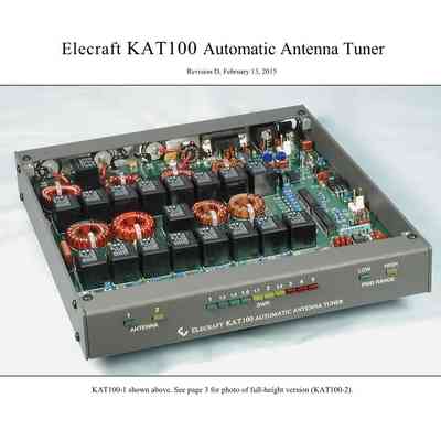 The KAT100 automatic antenna tuner is designed for use with the Elecraft K2/100 transceiver, as well as the basic K2. It can match loads with SWRs in excess of 10:1, and can easily handle 150 watts of transmit power.