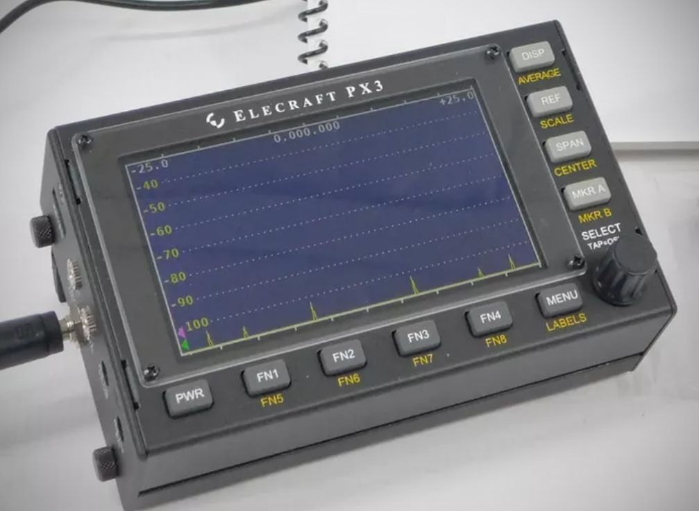 The PX3 has nearly all of the same features as the P3, including the same high-resolution color display, 2 to 200 kHz SPAN, fast sweep rates, and eight programmable “hot keys” to do quick setup. The primary difference between the two is in the interface to the transceiver. The P3 digitally down-converts the K3’s 8.215-MHz I.F. signal, while the PX3 uses quadrature baseband demodulation (I/Q) to convert signals from the KX3’s RX I/Q output jack. The PX3’s method requires less interface and demodulation circuitry, resulting in a significantly lower-cost unit with lower power consumption (consistent with portable use).