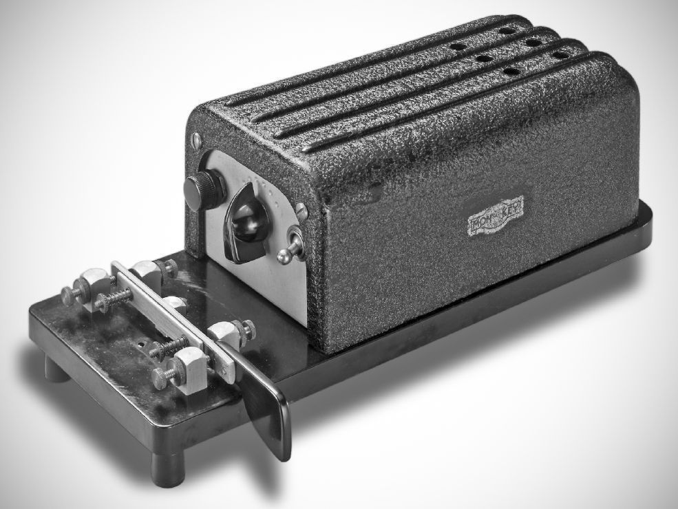 The Electric Eye Equipment Company of Danville, Illinois brought the first commercial electronic keyer to the amateur market. The Mon-key produced uniform dots, dashes, and intervals between 10 and 35 wpm. It used three tubes and had a built-in paddle and monitor.