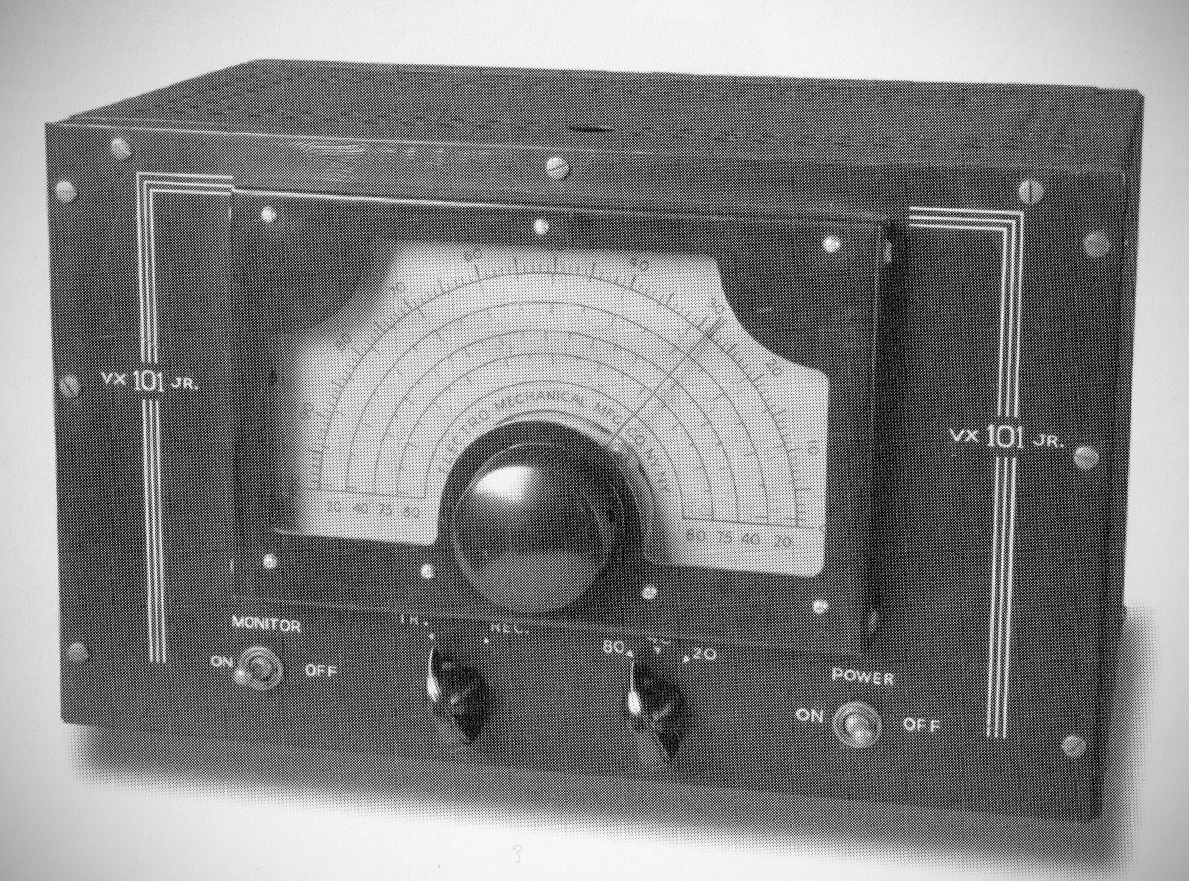The VX-101 Jr. exciter provided band-switching coverage of 80, 40, and 20 meters but had no provision for crystal operation. It was made by the Electro-Mechanical Mfg. company of Long Island City, New York.