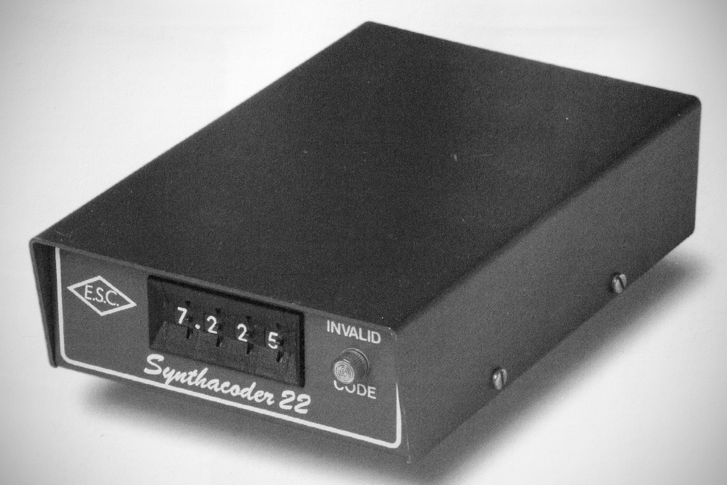 The Synthacoder 22 from Engineering Specialties of Oxnard, California was an alter market accessory for the lcom IC-22S VHF transceiver. !com's 2 meter rig had a diode matrix used to cover two meter frequencies, but only 22 channels. To add or change a frequency, the owner had to solder diodes into different positions on the circuit board. The Synthacoder 22 plugged into the back of the lcom and gave the owner thumbwheel selection of Any frequency in the transceiver's 146-148 MHz range.