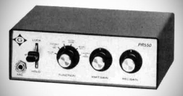 The PR-550(A) is a hybrid phone patch with and recorder control circuitry. Panel jack accepts S260 (PL68) plug. Selector switch (lock or momentary) controls PTT line. Function switch selects desired audio routing for recorder or play-back to equipment or phone line .