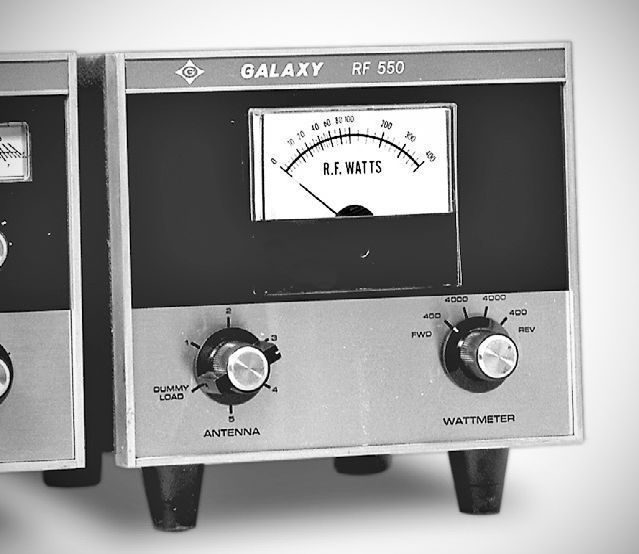 Designed to match the GT-550. The RF-550 wattmeter read forward and reflected power on 400 and 4000 watt scales. A front-panel switch had positions for five antennas and a dummy load.