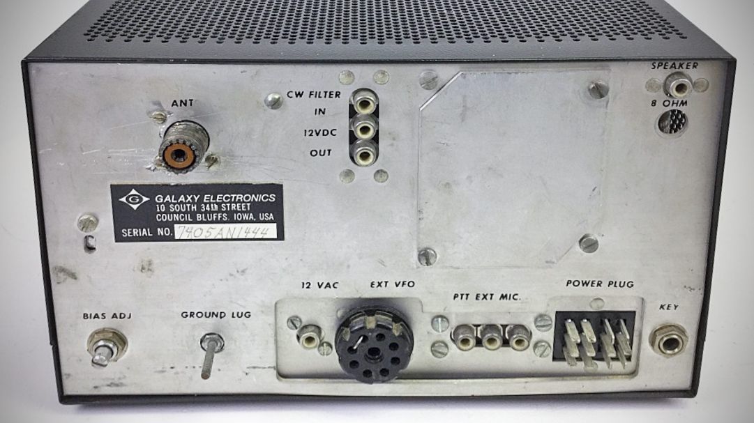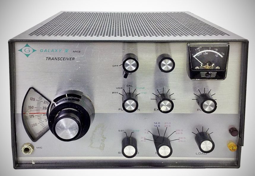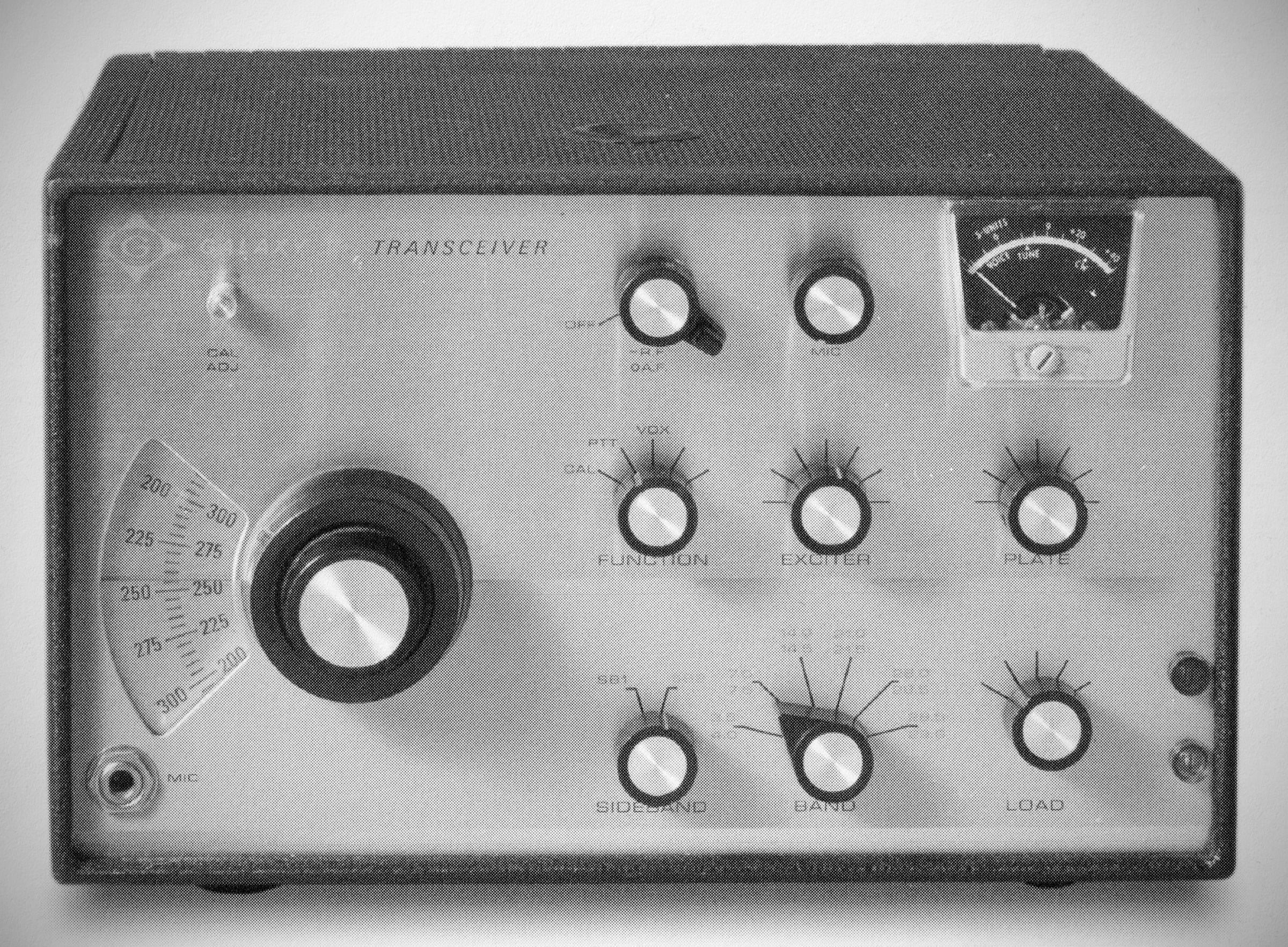 Galaxy Electronics was formed by World Radio Laboratories' Leo Myerson, W0GFQ, in 1962. The Galaxy V was a 300 watt PEP transceiver covering 8D-10 meters. The VOX as well as the receiver's audio and AVC circuits were solid-state. The price, not including the separate power supply, was $399.95.