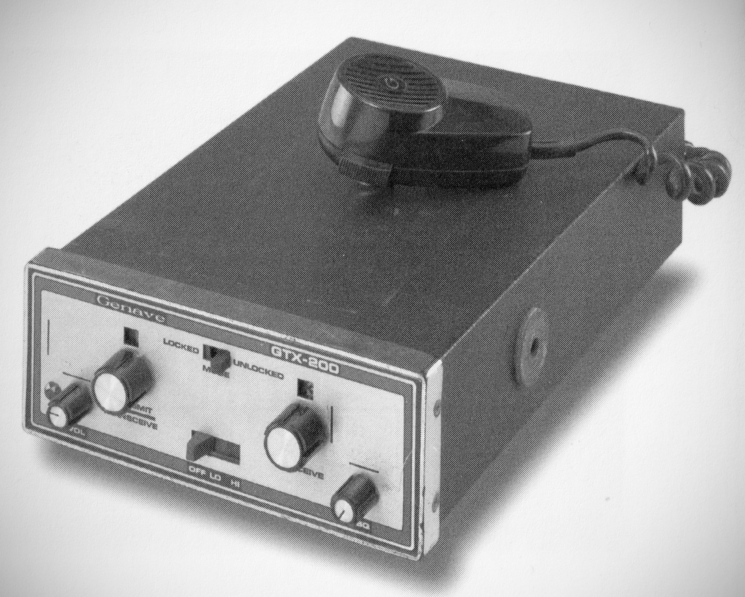 The GTX-200 transmitter used true FM rather than phase modulation. The 10-channel transmit 10-channel receive two meter transceiver had 30 watts output with a 1 watt low power position.