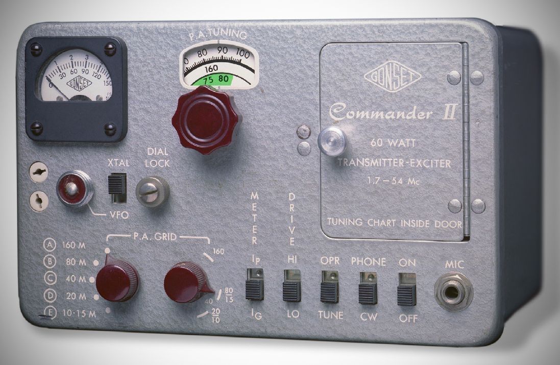The Commander covered 160-6 meters using plug-in coils. The crystal-controlled transmitter ran 35 watts phone, 50 watts CW. A tubeless VFO was available as an accessory. May be used with the Gonset 3020 "Commander VFO."