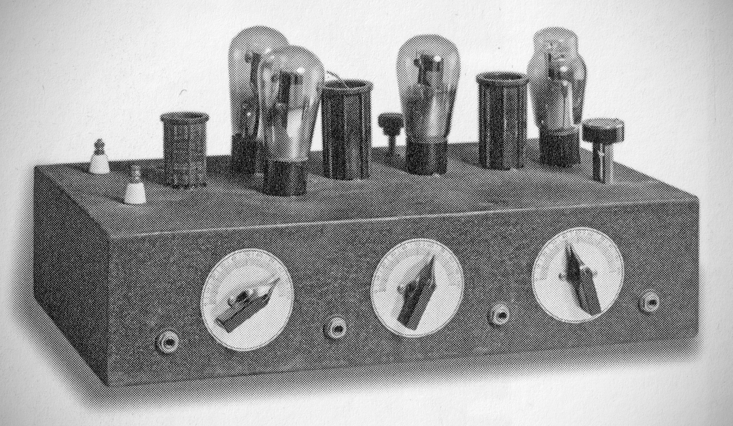 The kit builder received a handsome, pre-punched and drilled, wrinkle-finish (shrivel-finished as Gross put it) chassis, all parts (except tubes), a crystal holder, and one set of coils for $13.95. Extra coils for the 160 through 20 meter bands were 75 cents each (three required per band). A '47 crystal oscillator drove a '46 buffer/doubler, which, in turn, drove a pair of '46 final amplifiers. Jacks in each stage allowed a milliammeter to be inserted for tuning. A companion power-supply kit was offered for $8.75.