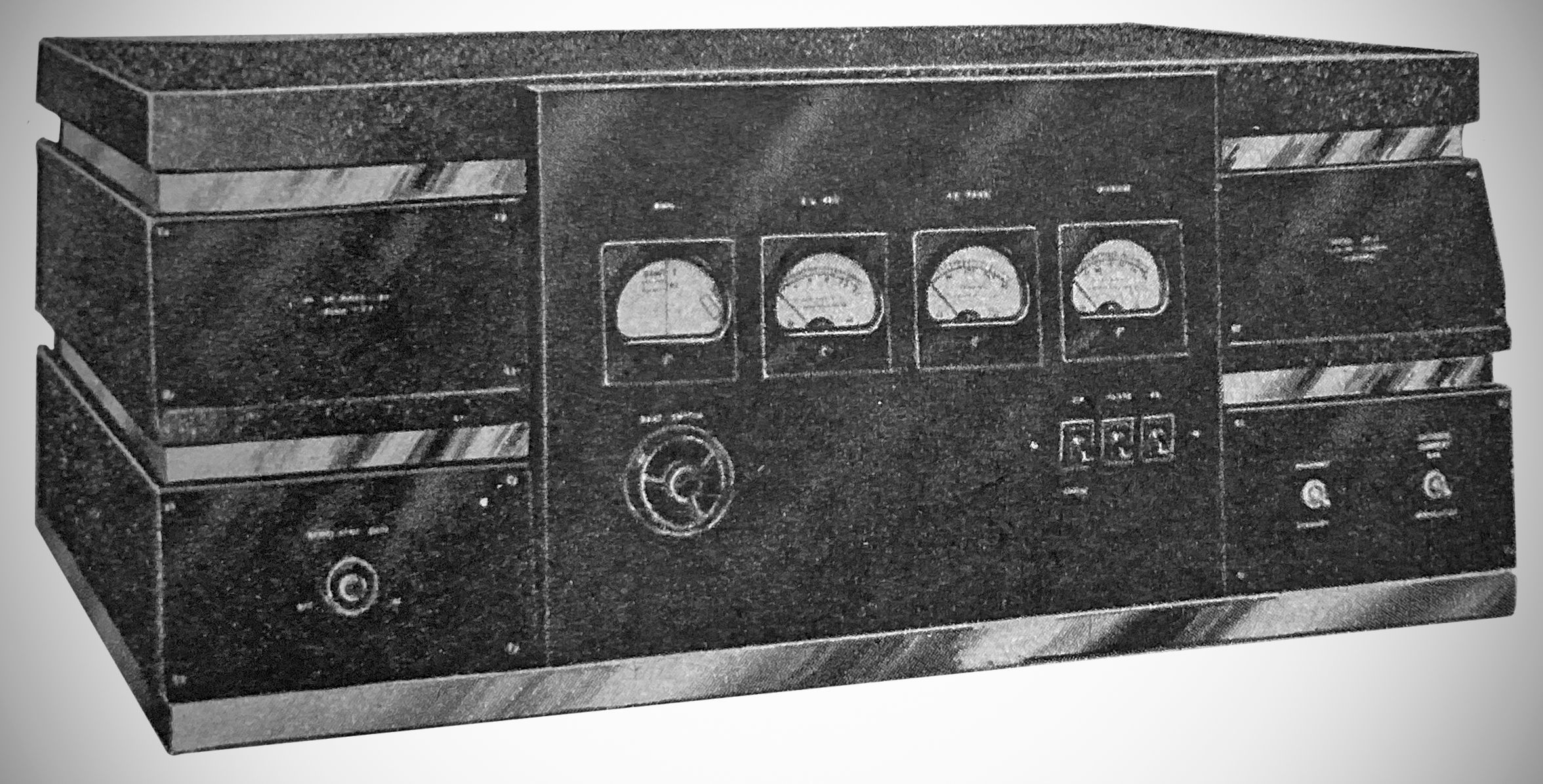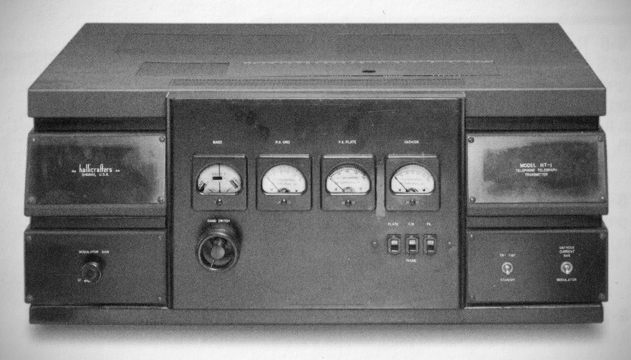 Hallicrafters' entry into the amateur transmitter market was rated at 100 watts out CW, 50 watts phone with an RK-47 final. Any three bands between 160 and 10 meters could be switch selected, as could one crystal frequency per band.