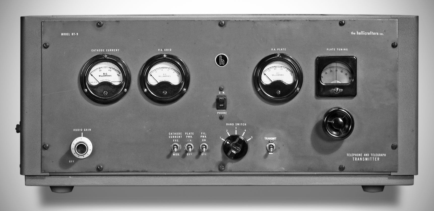 The HT-9 was rated at 100 watts CW and 75 watts phone carrier output on 160–10 meters. Exciter coils for five bands could be plugged in and selected with a front-panel switch. The final-amplifier coil had to be changed manually.