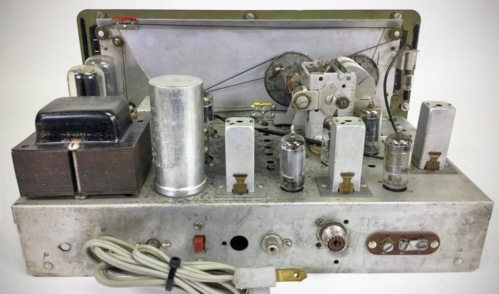 Tubes (8 total): (1) 5Y3, (1) 6C4, (3) 6BA6, (1) 6H6, (1) 6SC7, (1) 6K6
