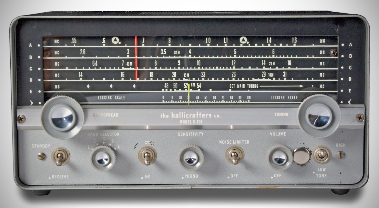 Single conversion superheterodyne. Replaces the S-53A. Features include bandspread, built-in speaker, BFO, ANL, variable sensitivity, tone control, and phono input. Note the gaps on coverage.