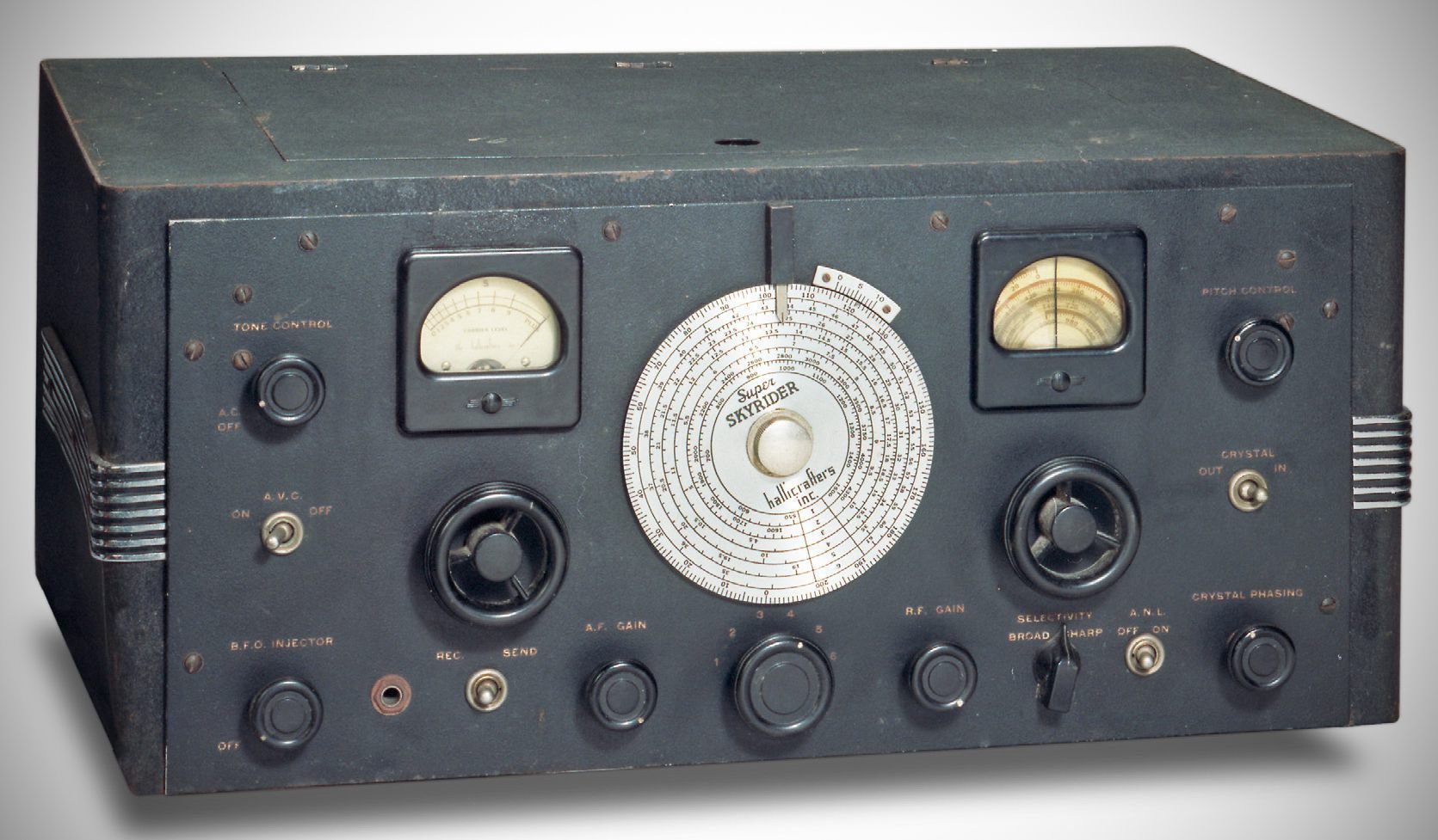 Superheterodyne. Extra stage of RF amplification and a noise limiter. SX-17-F made for use by the FCC, and features the option for 6 VDC power, though it does require an external "vibrapack" for mobile use. Requires external speaker.