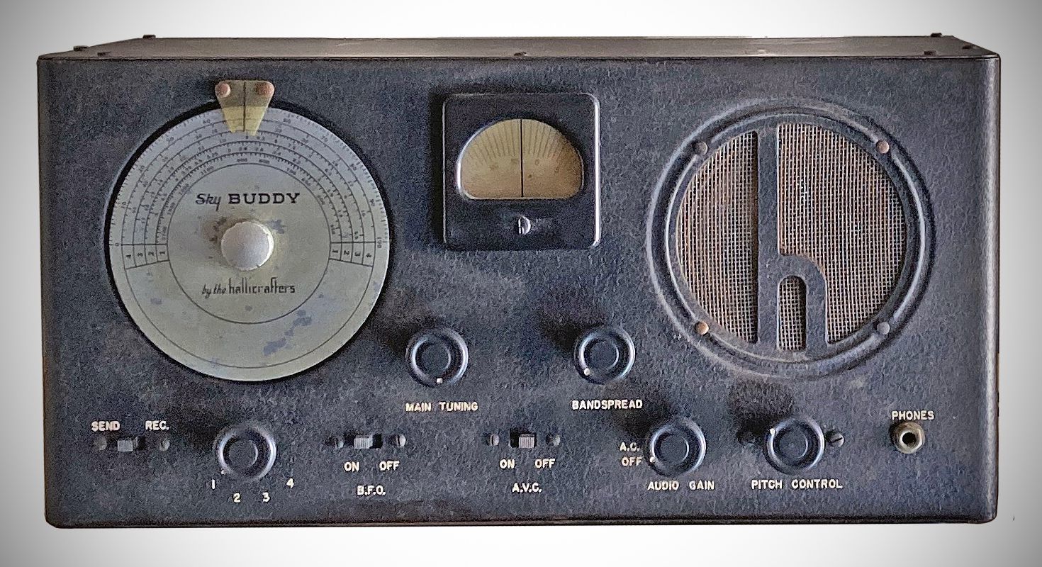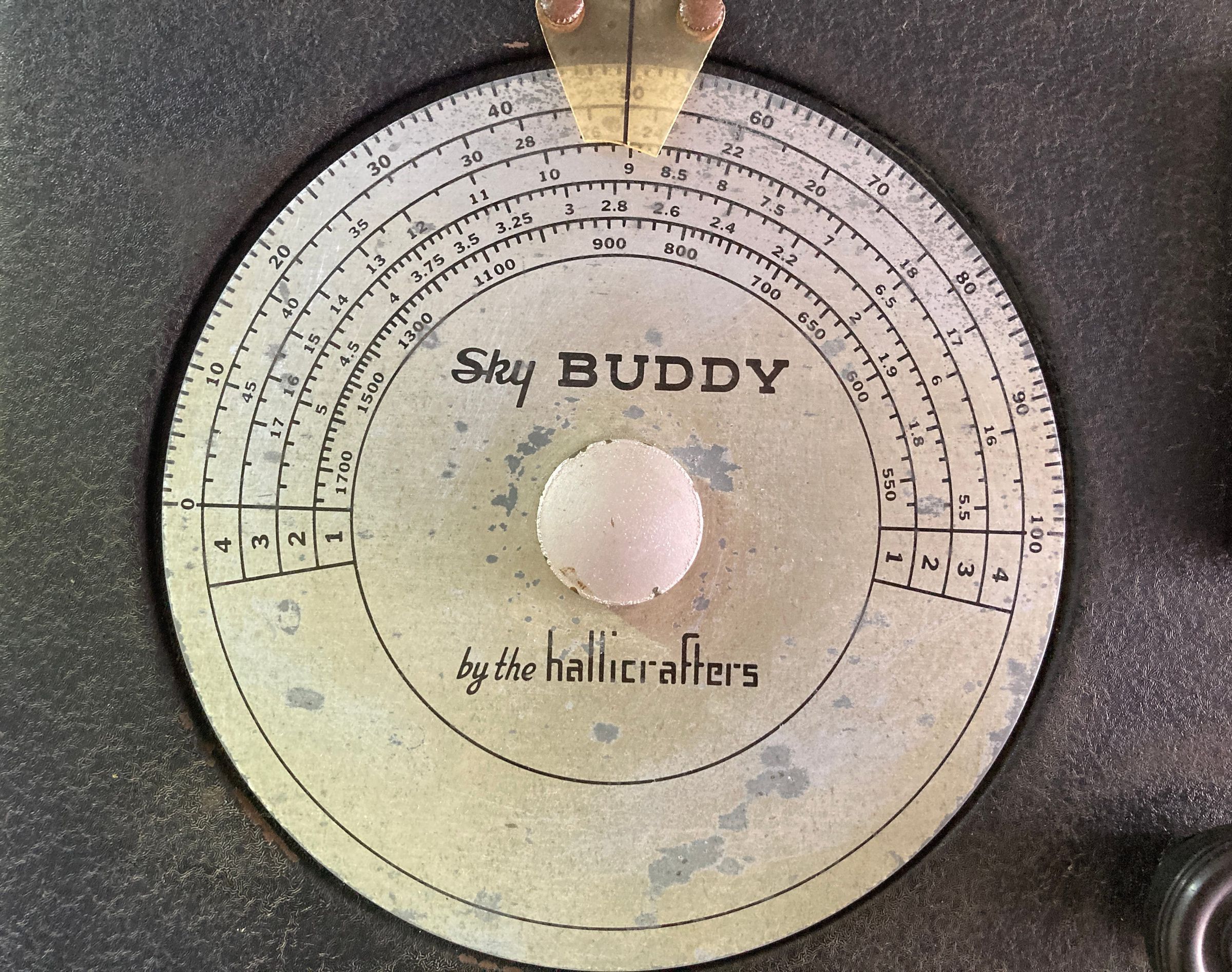 The 1939 model of the Sky Buddy improved upon its predecessor with the addition of coverage up to 10 meters, band spread tuning, and a separate BFO tube. The center dial is the bandspread. The earlier S-19 covered 0.545-18.5 MHz