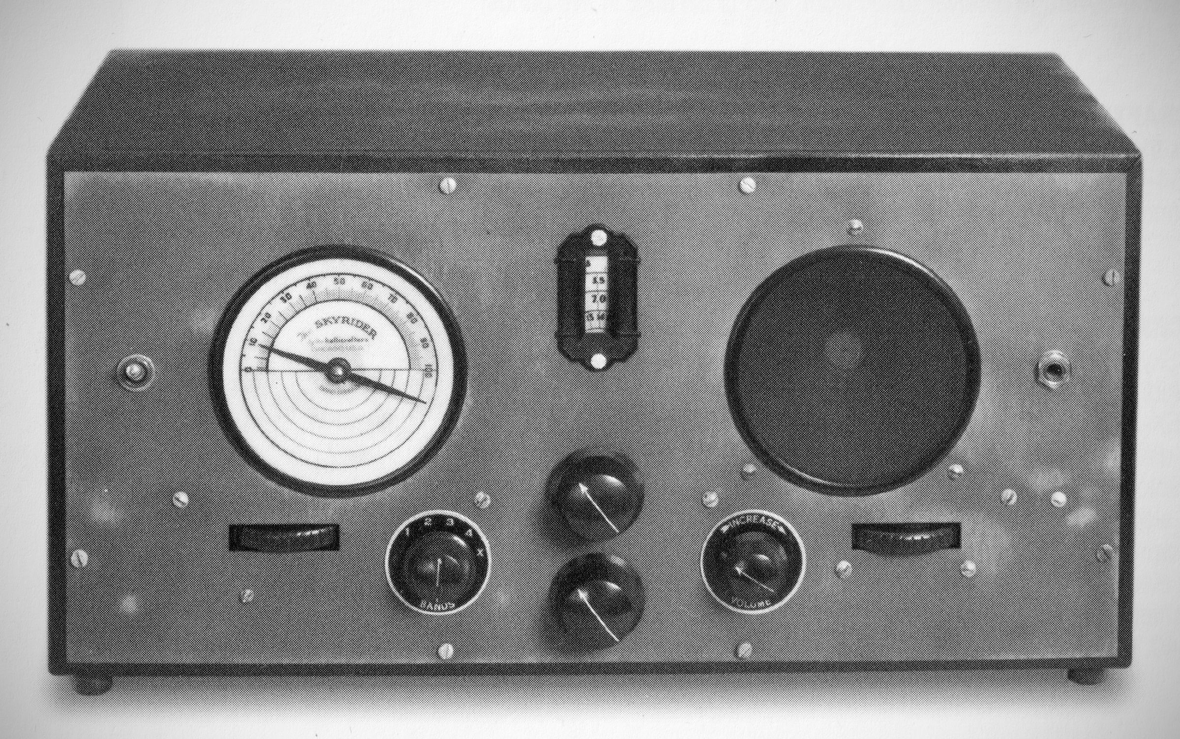 The S-3 Skyrider followed closely on the heels of the S-1 (an S-1 variant carried the S-2 designation) and was similar electrically to the basic circuitry of its predecessor. Uses tuned radio frequency regenerative operation. It added a fifth band to include the standard broadcast band in its coverage. Also new to the S-3 were band-spread tuning and a send-receive switch. Gone was the Silver-Marshall nameplate. The name Skyrider appeared on the band-spread dial.