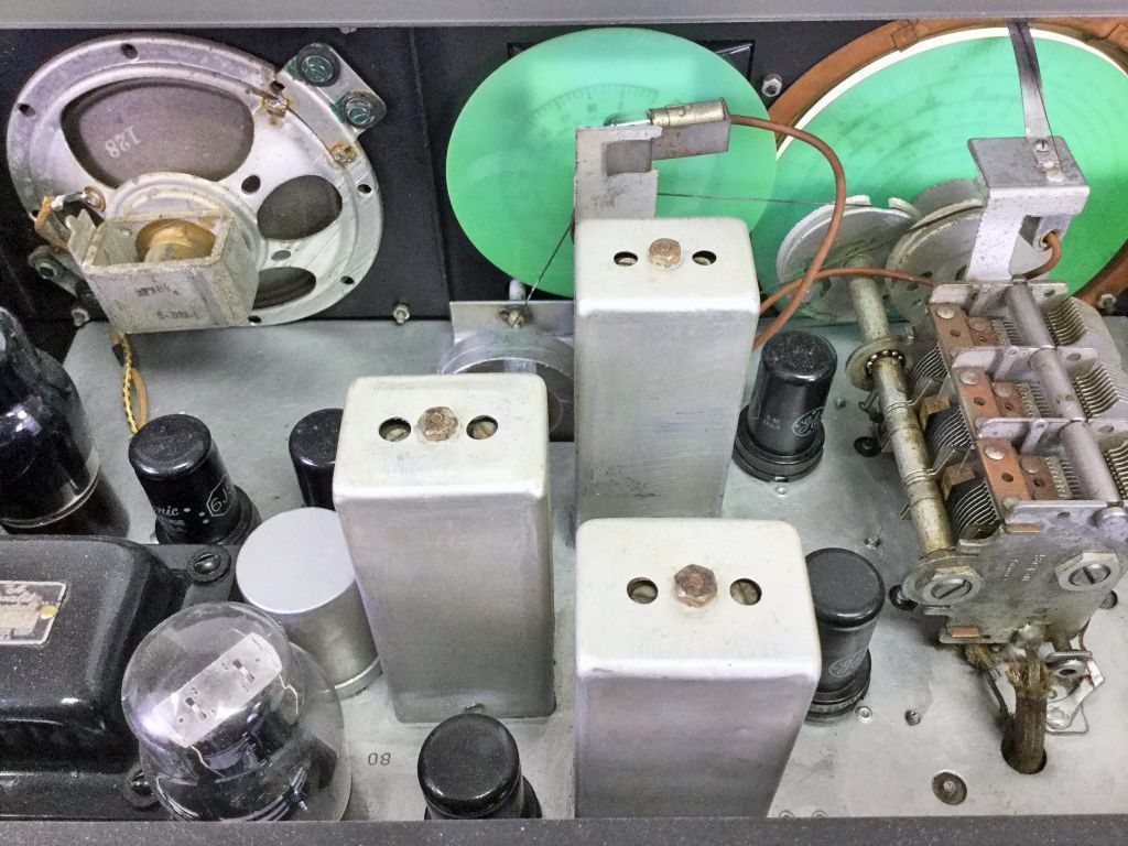 Cosmetically, there were also subtle differences. The front panel of the S-40B was a single piece, with the speaker grill and dial escutcheon stamped directly into the panel, as opposed to being separate pieces as they were on the earlier models. This was another cost-saving measure.