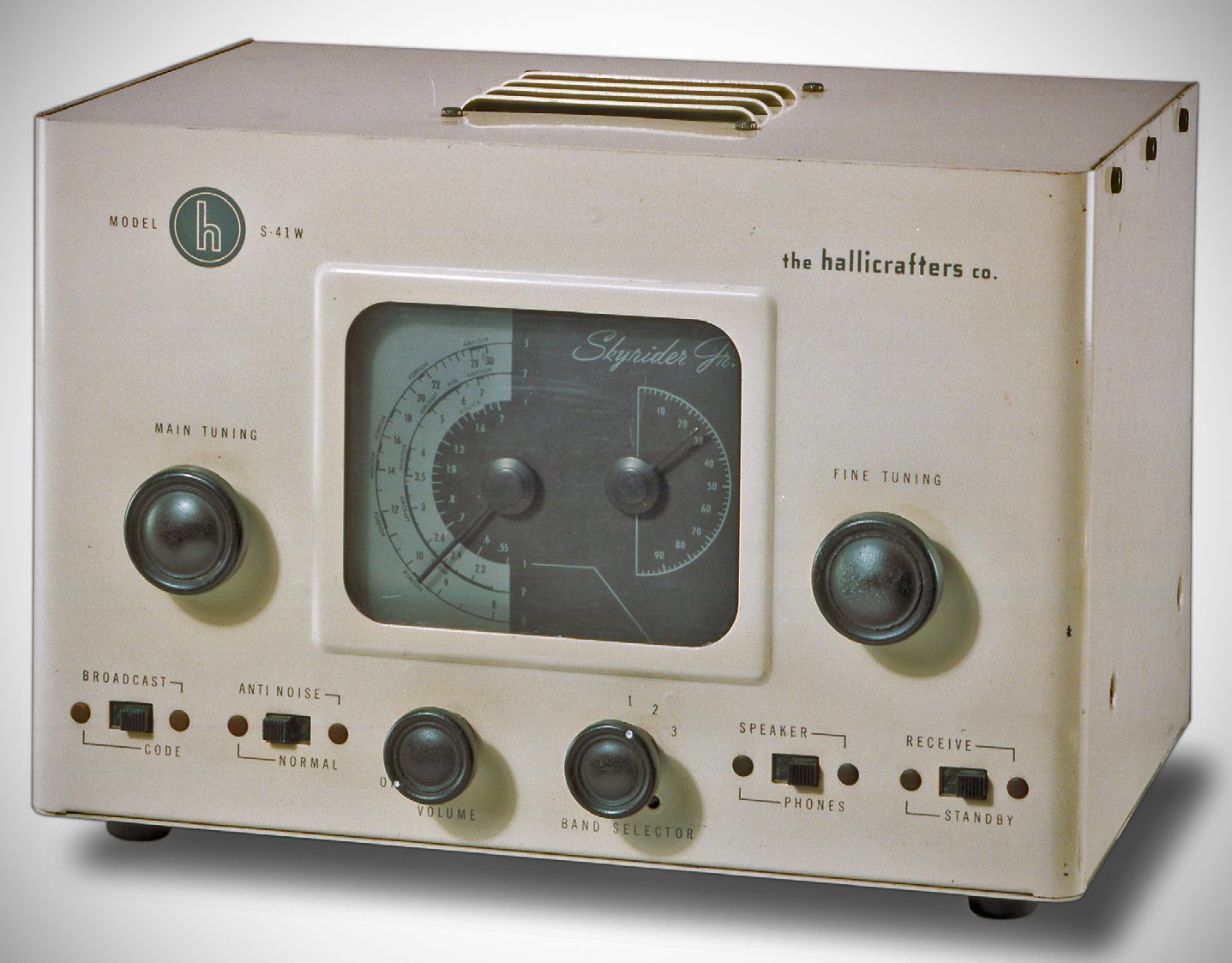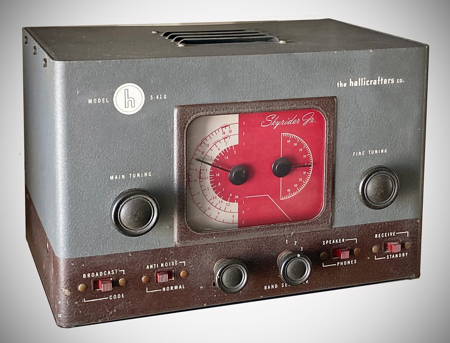 A couple of curious details: the mode switch is labeled BROADCAST and CODE, rather than AM and CW, and instead of ANL there is a switch labeled ANTI NOISE and NORMAL.