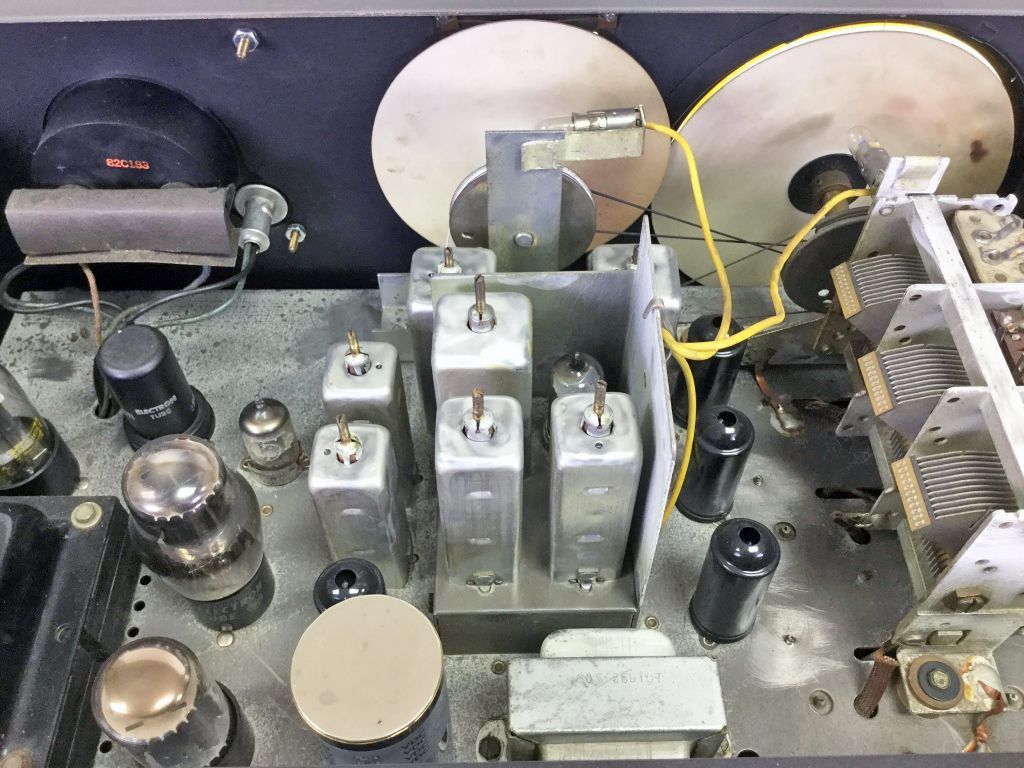 Tubes: (1) 6CB6, (1) 6AU6, (1) 6C4, (2) 6BA6, (1) 6BE6, (1) 6AL5, (1) 6SC7, (1) 6K6 (1) 5Y3, (1) 0D3 (VR-150)