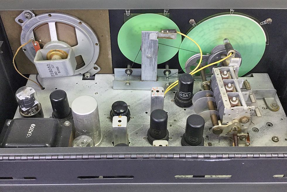 Tubes: (8 total): (1) 25Z6, (1) 25L6, (1) 6SC7, (1) 6H6, (2) 6SK7, (1) 6SA7, (1) 6SG7