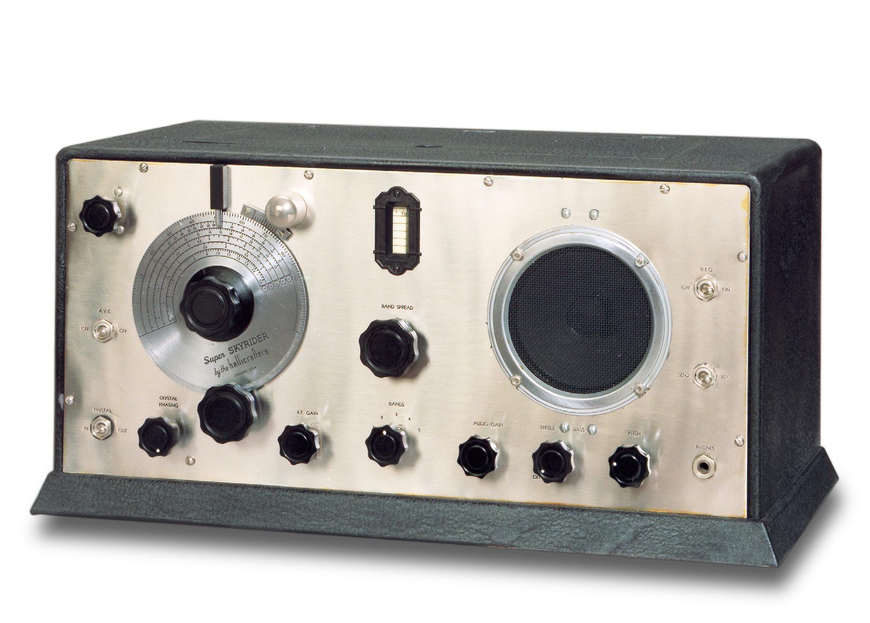 Superheterodyne circuit. The first Hallicrafters radio produced in significant quantities. Early versions had the company logo engraved on the upper right corner of the rig. Later versions had no logo. The "SX" version includes a crystal filter.