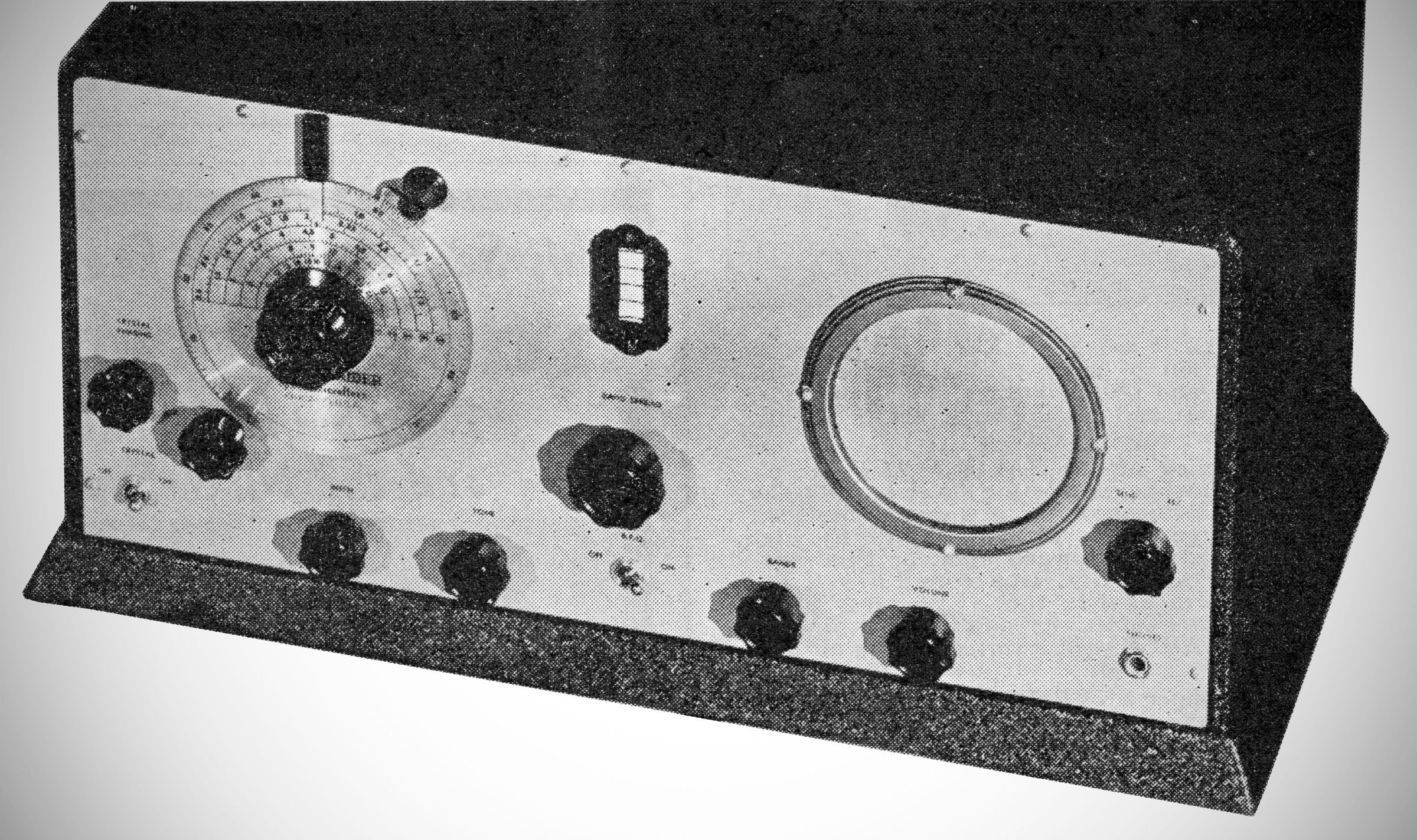Features include, a built-in power supply and speaker, five bands, genuine band switching instead of plug-in coils, a "full seven inches of bandspread" on 40 meters, a preselector, two-stage dual air tuned IF transformers, sensitivity better than 3 µV for 50 mW output ("hear CW signals at a fraction of a millivolt,") audio output of 3 watts maximum, and transmit-receive switch.