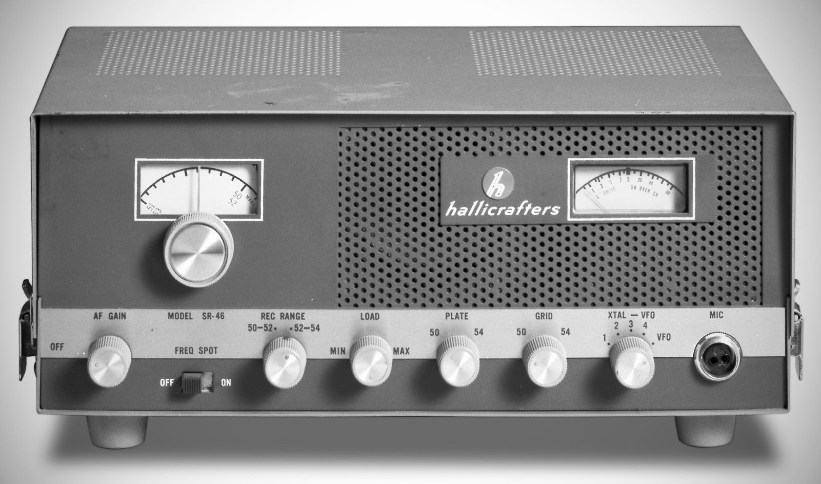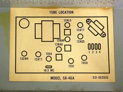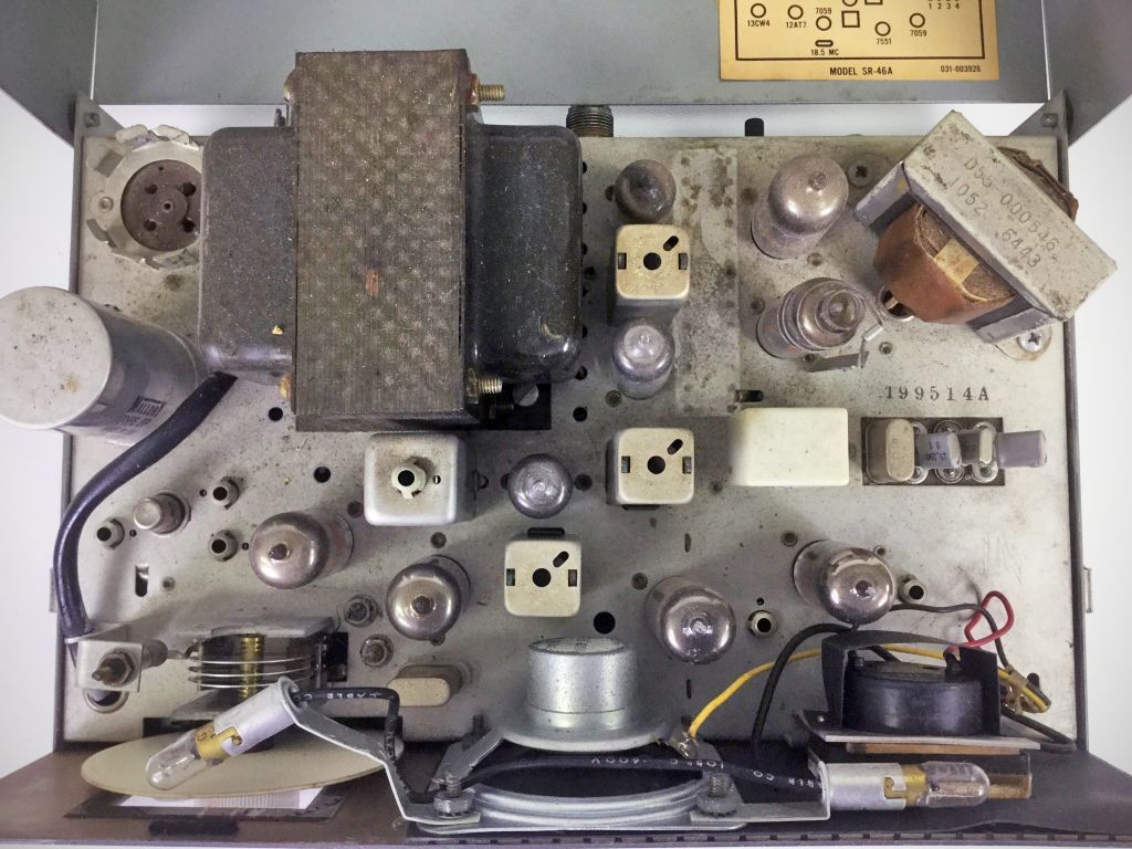 The SR-46 shared design features with the SR-42. It covered 6 meters, tuning 50–52 and 52–54 MHz. The SR-46 used 10 tubes rather than the SR-42’s 11. The transmitters in both rigs ran 10–12 watts input.