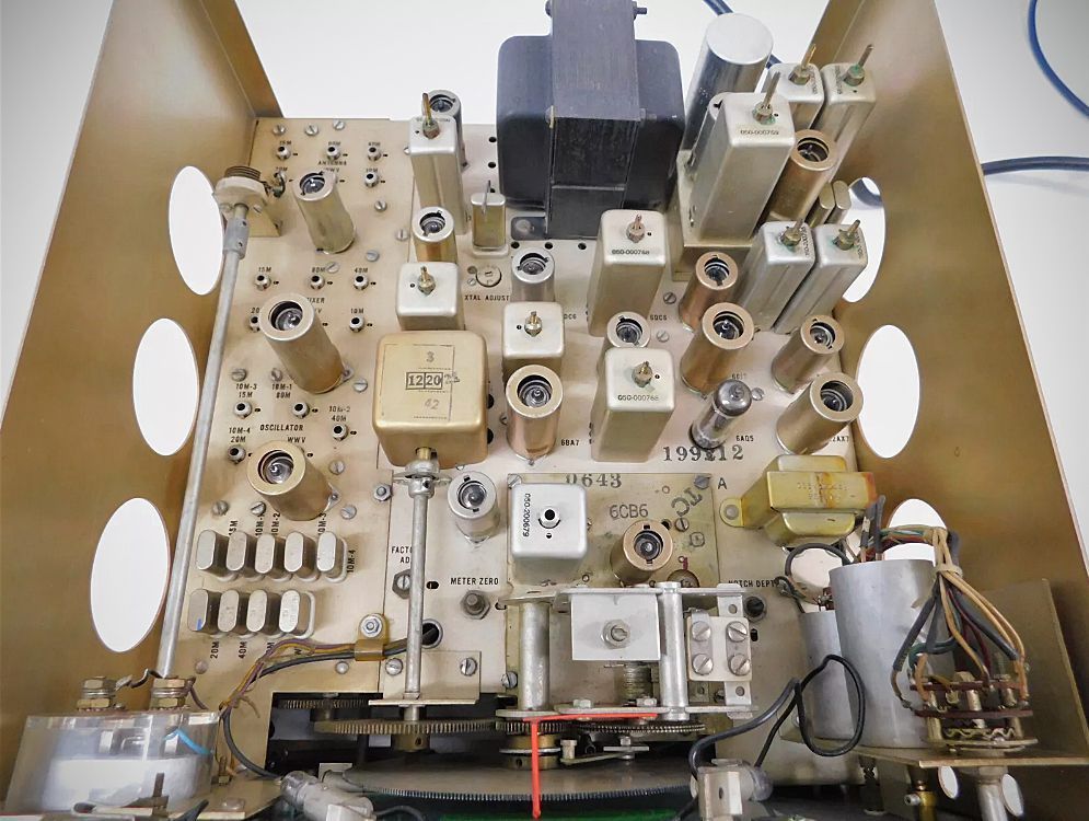 Built in crystal calibrator permits dial accuracy as good as ± 1 kHz. Gear drive tuning is virtually backlash free. Features include: S-meter, AVC ON/OFF, RF gain, ANL, mute line, antenna trimmer, notch, and 50 kHz IF Out Jack. Requires an external speaker.