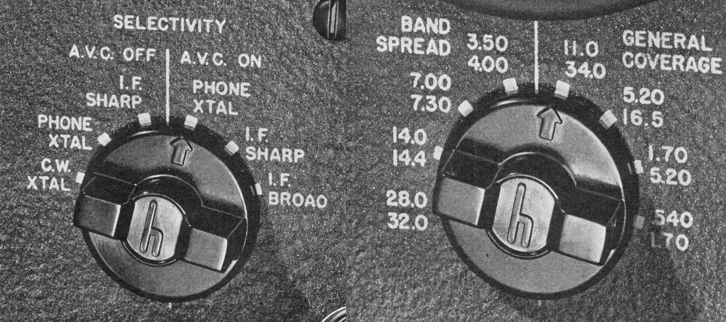 The 23's venetian-blind-style tuning dial highlights the receiver's Art Deco look. Its four general-coverage bands tuned from .54-34 MHz. Four band-spread ranges covered the 80 through 10 meter ham bands. The SX-23 had a crystal filter and used 11 tubes.
