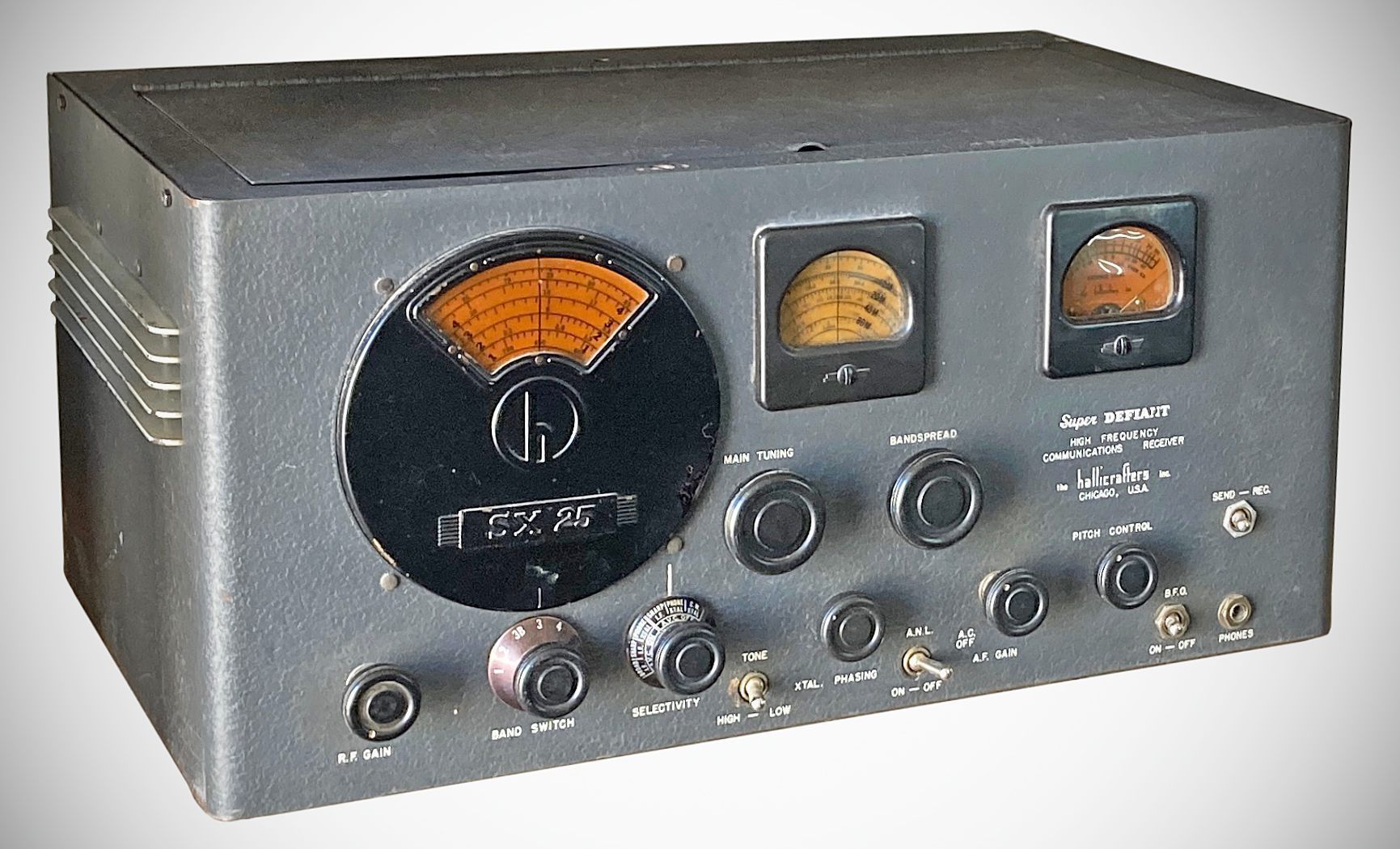 The Hallicrafters SX-25 "Super Defiant" is a classic piece of shortwave radio history, an imposing and quality communications receiver that cemented Hallicrafters' reputation as a premier manufacturer of "the radio man's radio." Introduced in 1940, the SX-25 was a significant step up from its predecessor, the SX-24 "Defiant." While the SX-24 was a solid performer, the SX-25 was built with 12 tubes (compared to the SX-24's nine) and featured a push-pull audio output stage, providing a richness and fidelity of sound that was a hallmark of its design.