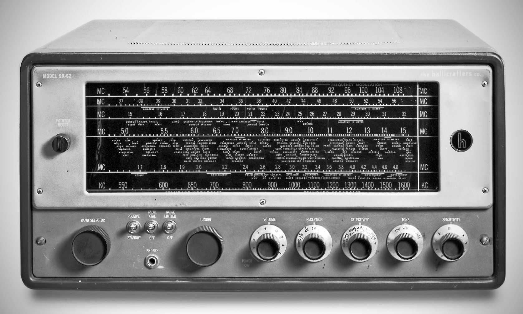 The unit provides AM and CW reception over the entire range of 540 kHz to 109 MHz, with FM reception added above 27 MHz. The expansive slide rule dial permits accurate tuning, but without a bandspread the SX-62 is mostly unsuitable for amateur radio work. It is, therefore, most useful as an SWL receiver. As in the S-38D and E, the names of various countries are printed on the dial window, indicating the frequency at which their intentional broadcasting stations could be heard. These listings are long outdated and no longer useful.