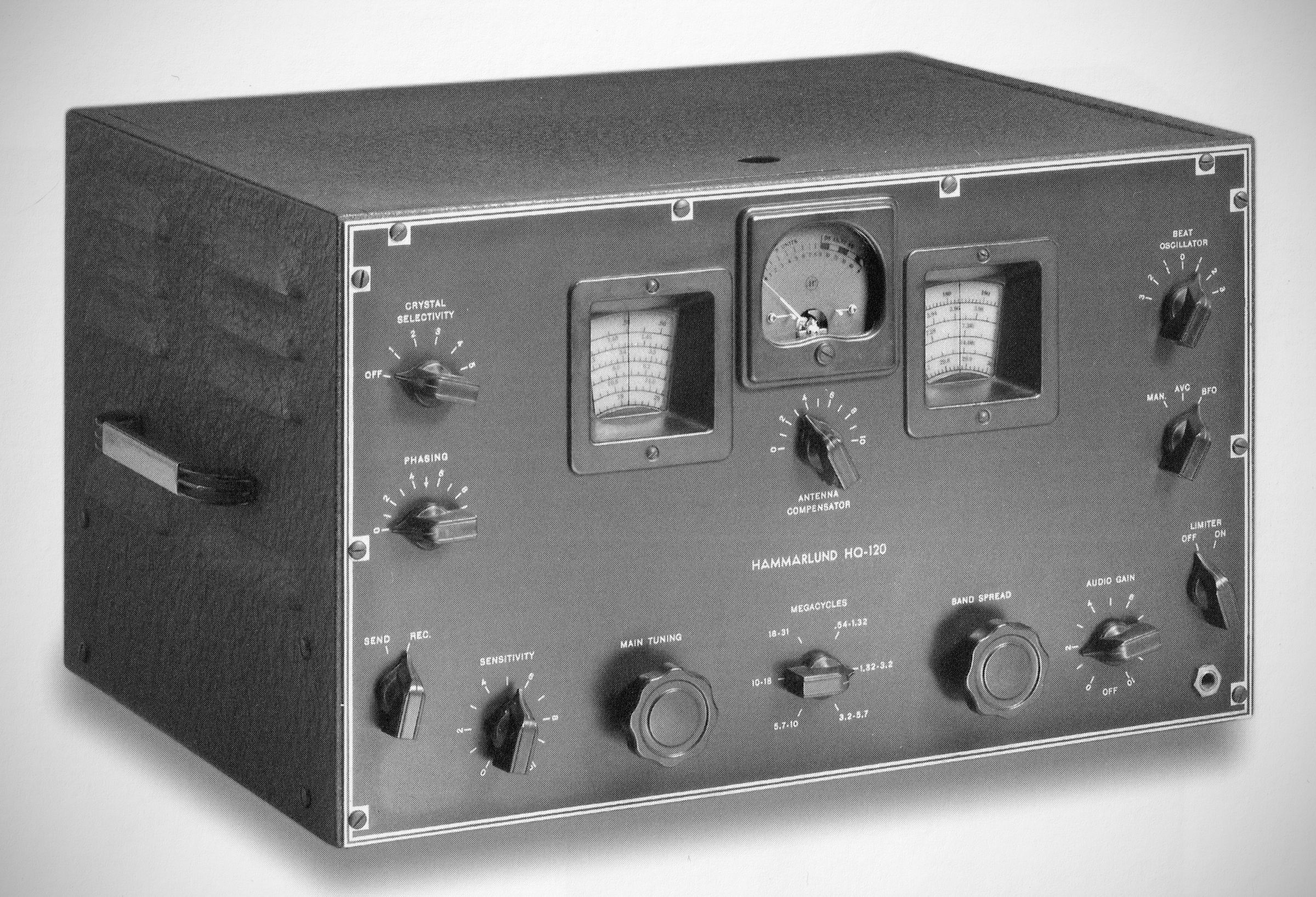 The 120 was the first of Hammarlund's HQ series. Its basic appearance and circuit features would be repeated in many of the company's post-war receivers. The twin dials carried main tuning and electrical band-spread scales. It had a regulated power supply and a noise limiter, and a variable-bandwidth crystal filter was offered as an option. The 12-tube set tuned from 0.54 to 31 MHz.