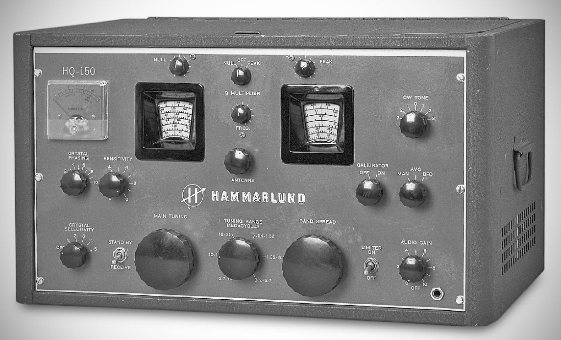The HQ-150 offered features devoted to selectivity and single-signal reception. The 13-tube receiver had both a crystal filter and a Q-multiplier in its 455 kHz IF. The HQ-150 tuned from .54 to 30 MHz in six bands.