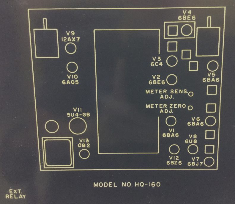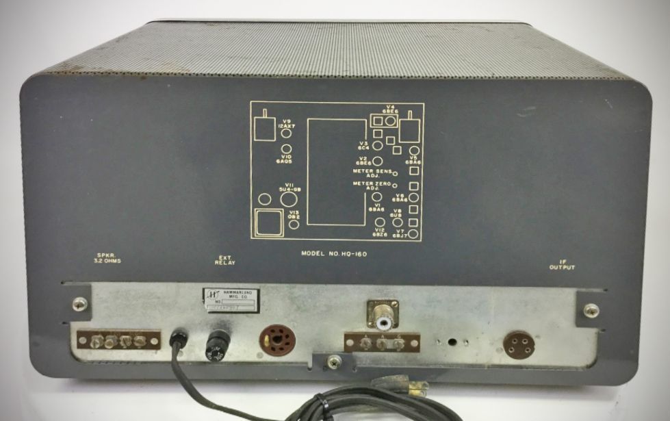 The double-conversion HQ-160 had IFs at 3035 and 455 kHz. It tuned from 0.54–31 MHz in six bands. There were 14 IF tuned circuits, a Q-Multiplier, and notch filter for selectivity. The band-spread dial had calibration for the 80 through 10 meter bands.