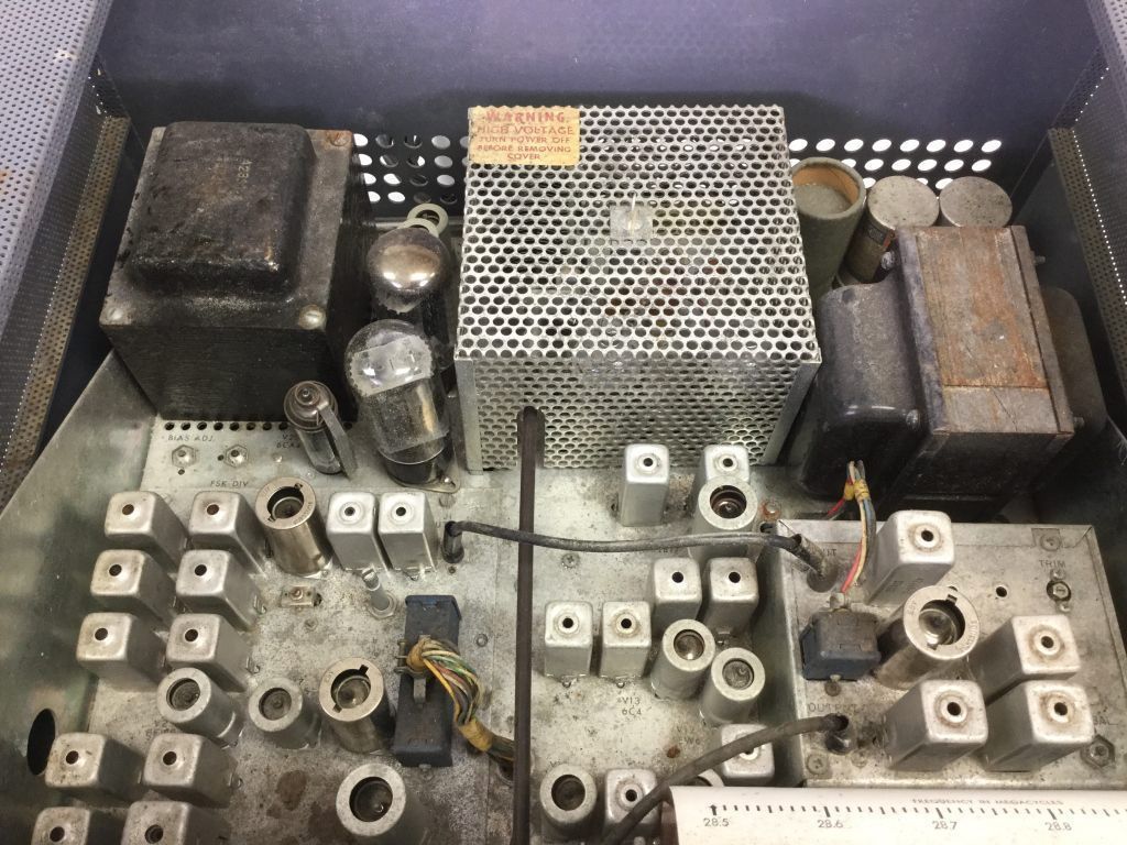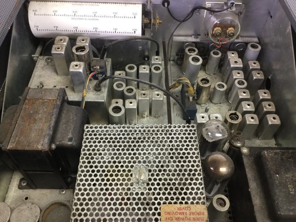 The HX-500 used 60 kHz L/C filters in its side-band generator. Other modes were CW, AM, FM, and FSK. It used a pair of 6146s for 100 watts output on 80-10 meters. AM output was reduced to 25 watts. It had a built-in antenna relay and a fixed 50 ohm pi-net output.